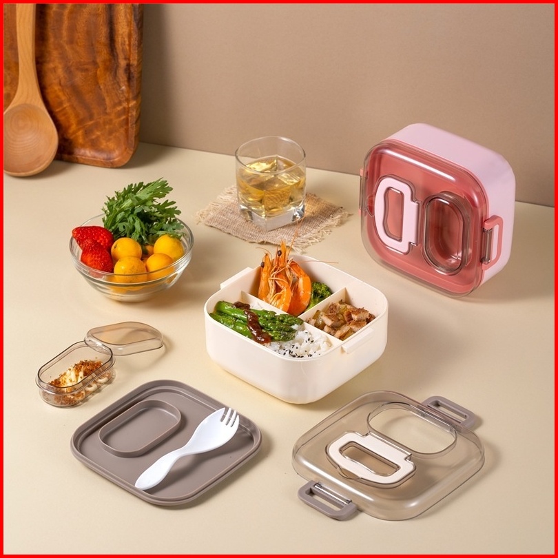 Paket 3 In 1 Kotak Makan Set Sendok Garpu Tas Bekal Thermal Insulation Botol Minum 500ml Anti Tumpah