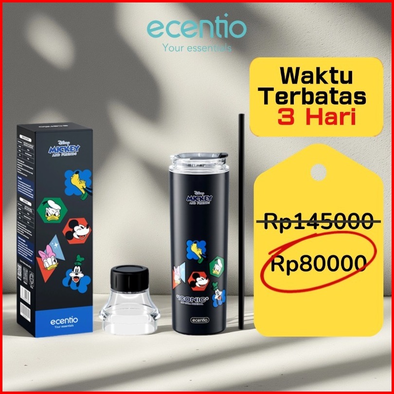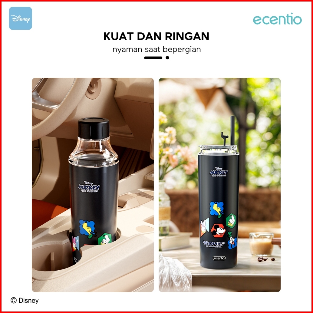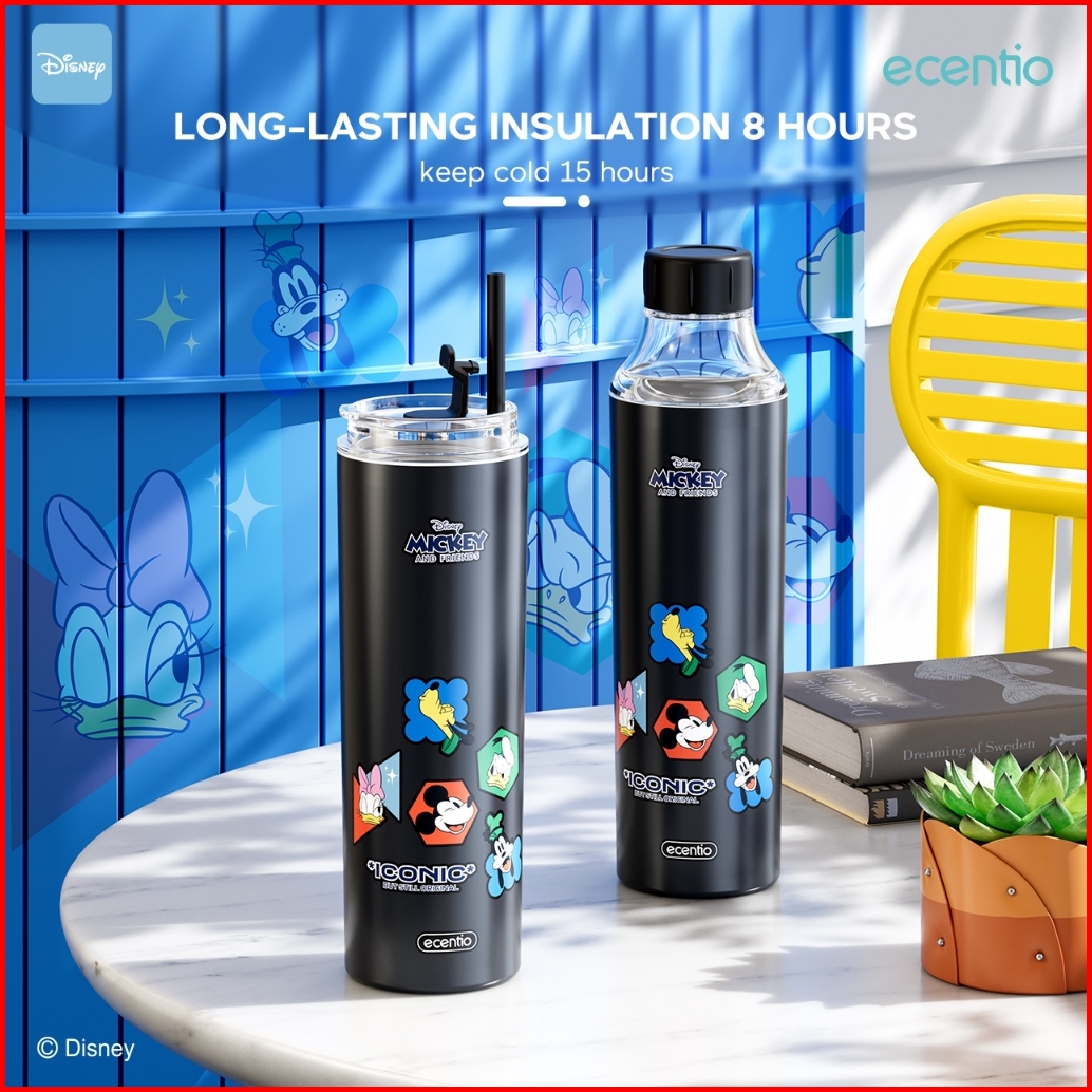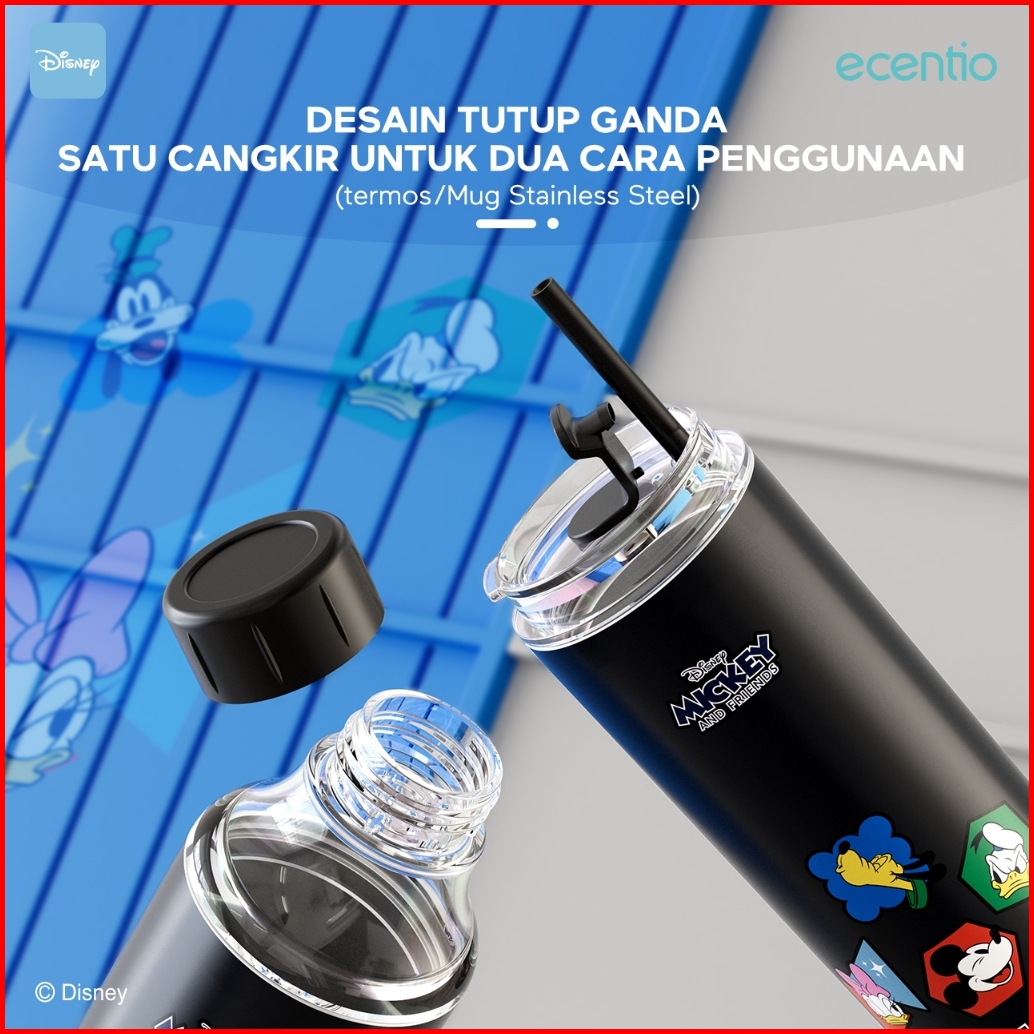 Originalecentio Tumbler 600ml 304 Stainless Steel Botol Minum Tutup Ganda Disney Micky Hitam