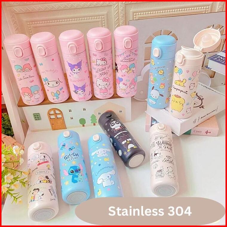 Botol Minum Tumblr Stainless 304 Disney Pooh Pochacco Melody Little Twin Star Pompourin Hello Kitty Kuromi Cinnamoroll