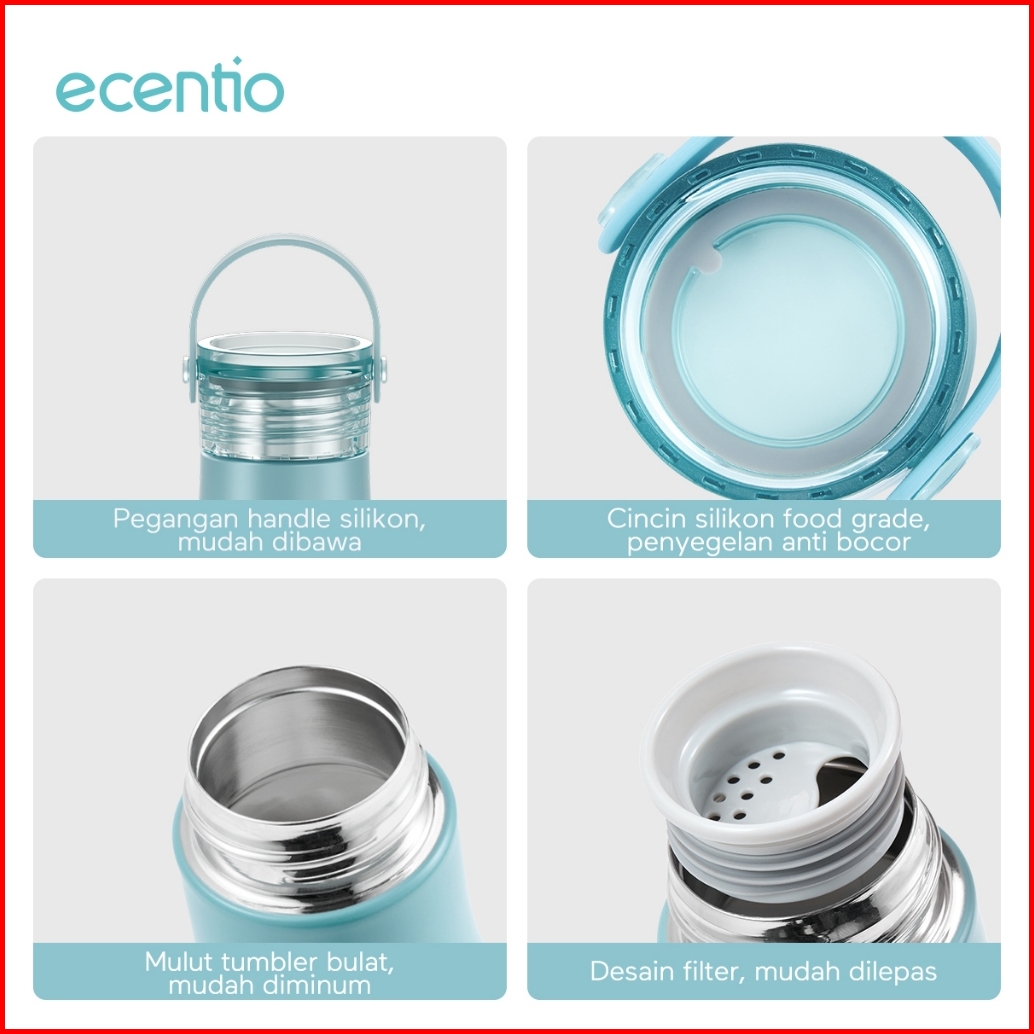 Ecentio Termos Vacuum Flask 18 Jam Tumbler Korea Style 304 Stainless 500ml Dan Filter Tumbler Minum Pegangan Handle Sili