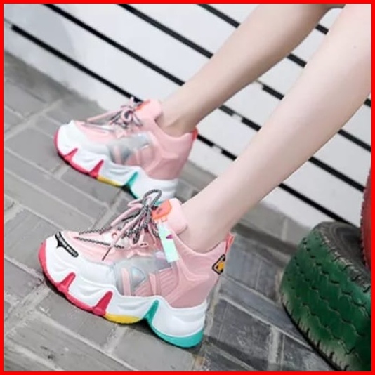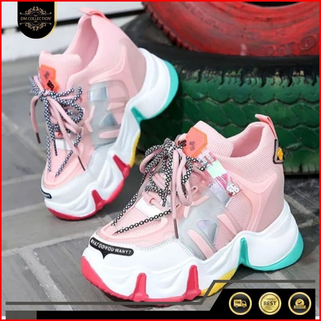 Dm Shopp Sepatu Sneakers Wanita Hak Tebal Sol Dalam Kombinasi Uper As 163
