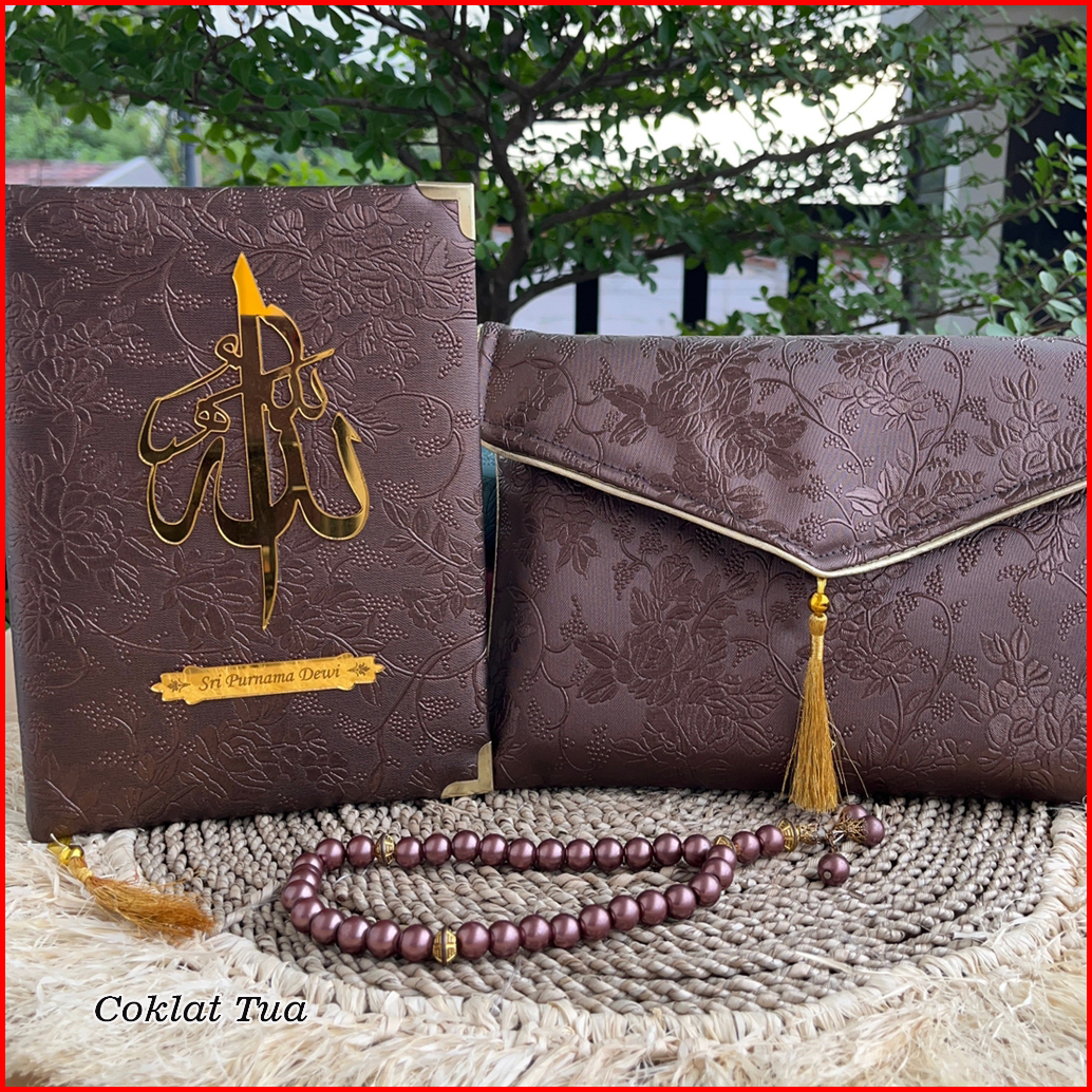 Al-qur An Custome Nama De Flower Clasic Pouch. Free Tasbih Premium 33 Butir