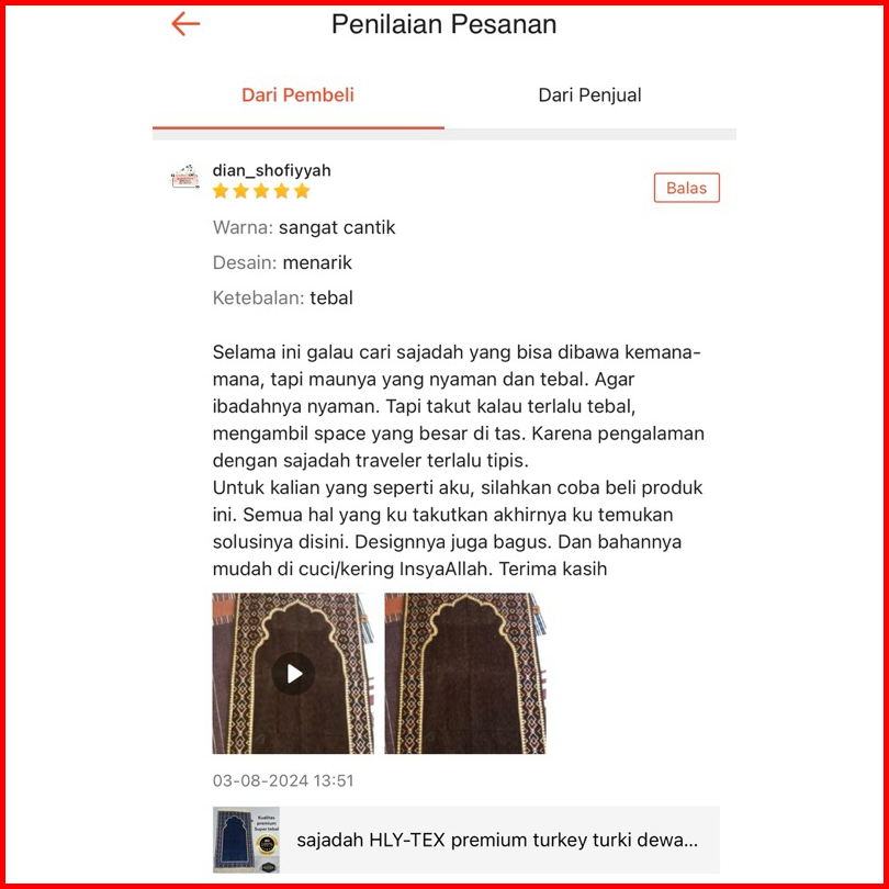 Sajadah Hly-tex Premium Turkey Turki Dewasa Besar Tebal Souvenir Tahlil Umroh Haul