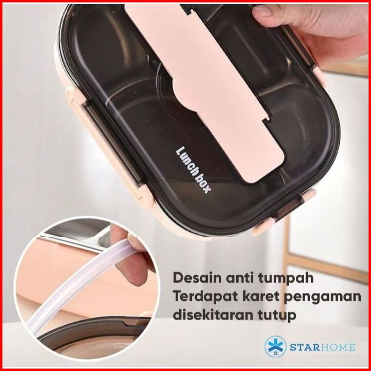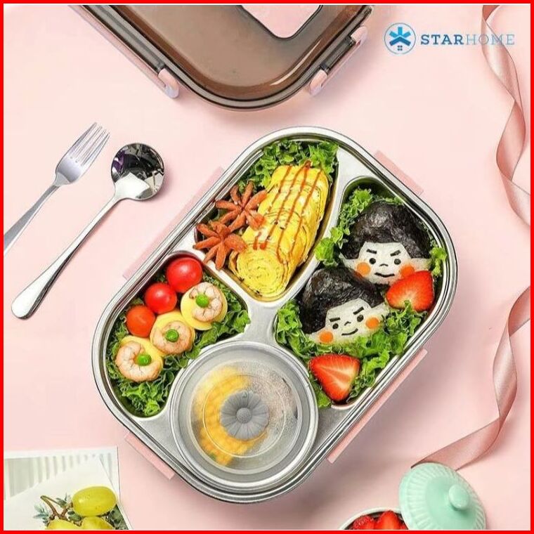 304 Kotak Bento Portabel 4 Kompartemen Dari Baja Tahan Karat Kotak Makan Siang Untuk Anak-anak Anak Sekolah Pekerja Kant
