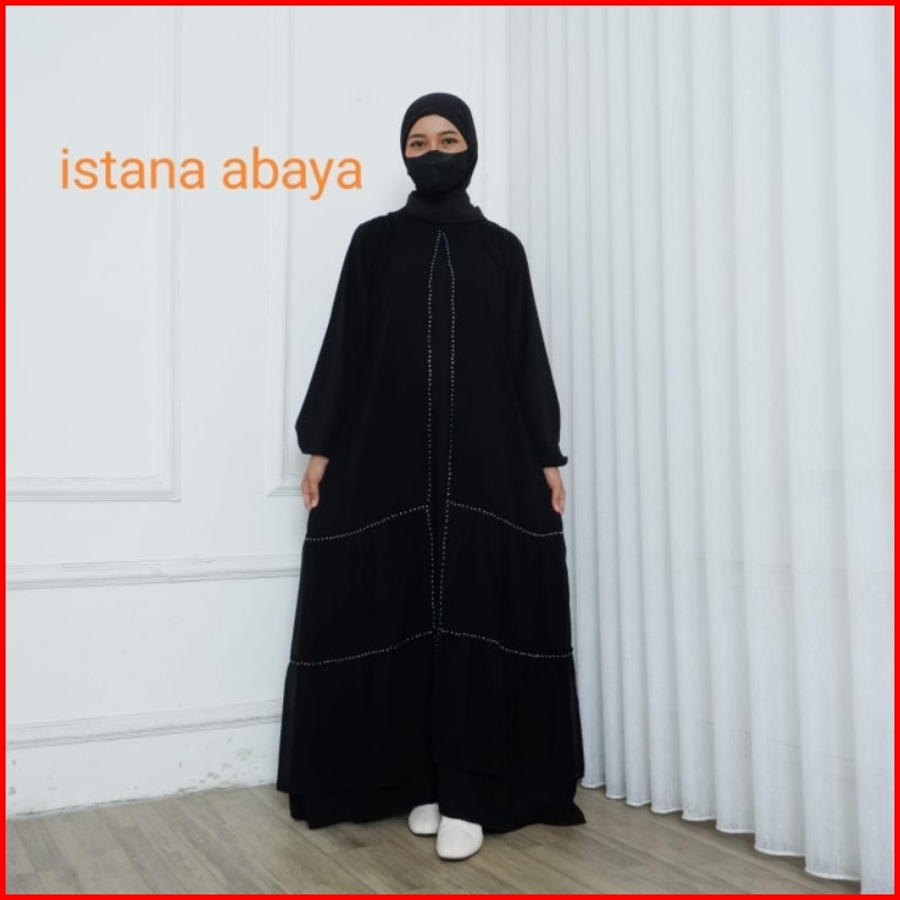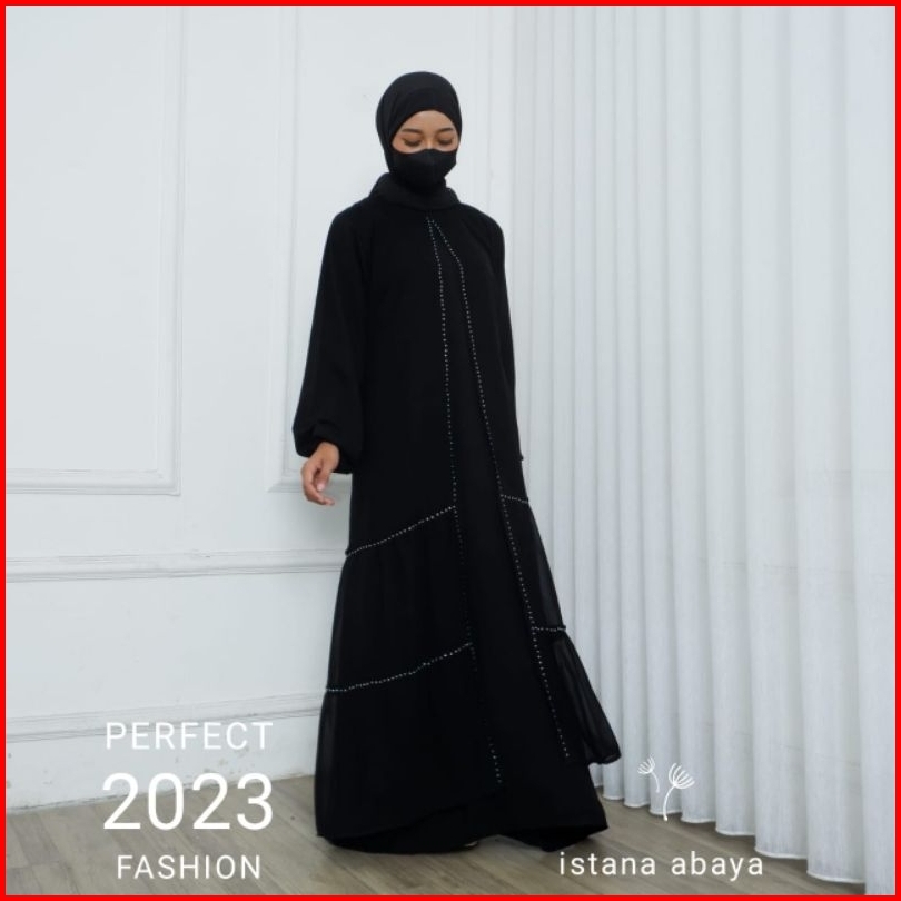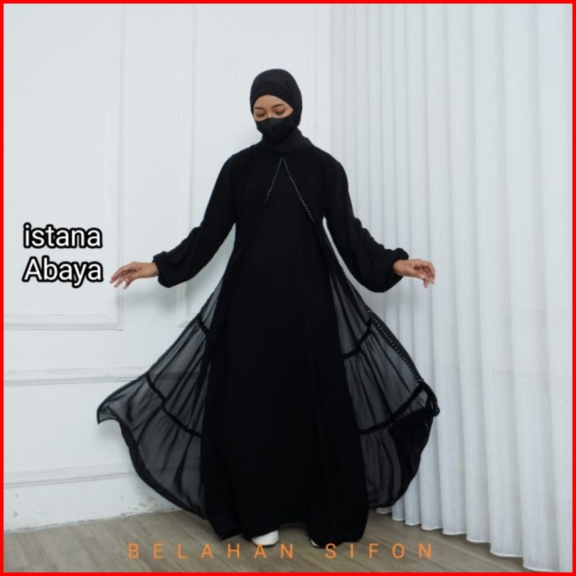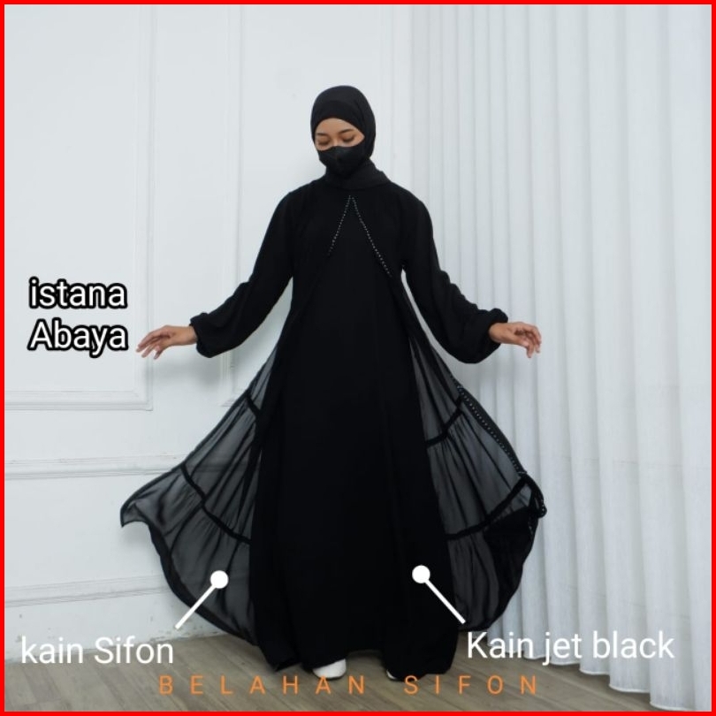 Abaya Saudi Cantik Kain Jetblack Kombinasi Longardi Sifon Belahan Depan Dg Tgn Karet Mewah Dan Mata2 Blink Elegan Bgt Re