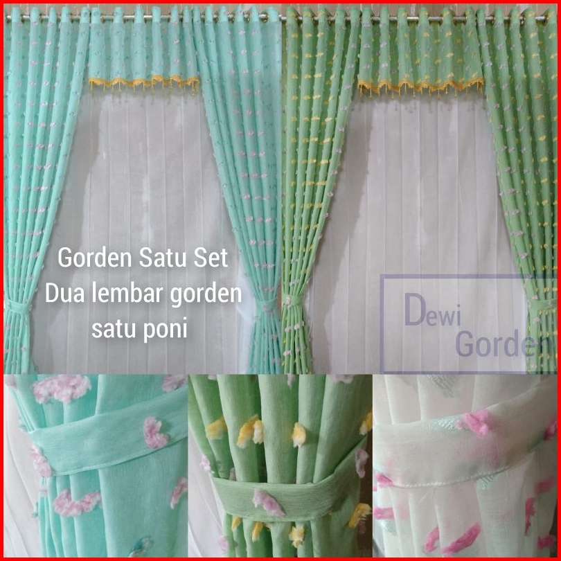 Gorden Satu Set Poni Model Smokring Bahan Pitrase Rubicon Pink Hijou Tosca Biru Model Korden Terbaru