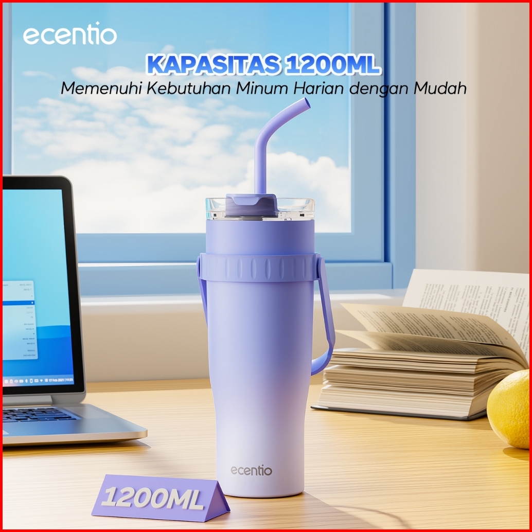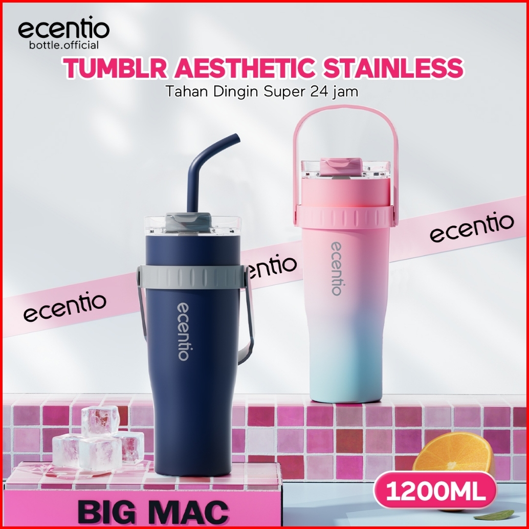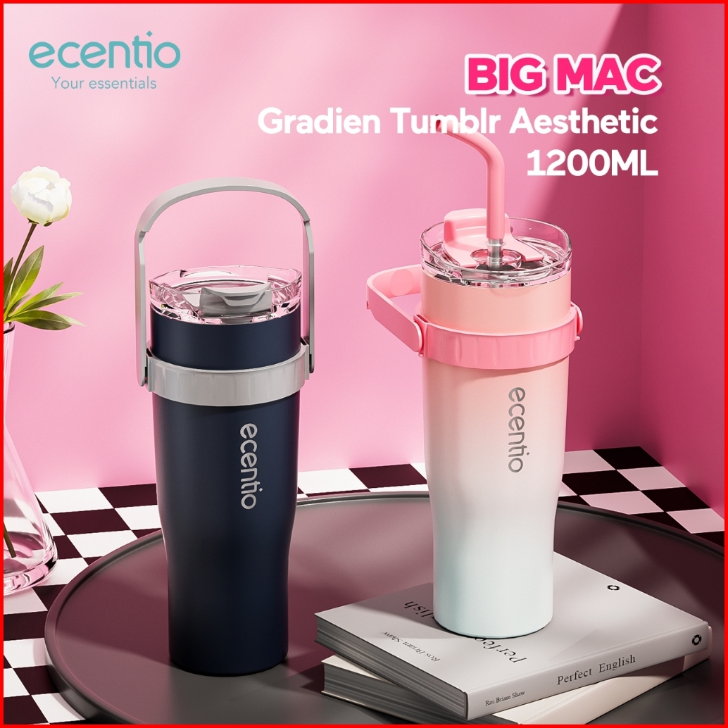 Big Macecentio Gradien Tumblr Aesthetic Botol Minum Sedotan Tumbler Stainless 1200ml Tahan Panas Dingin 24 Jam Portable