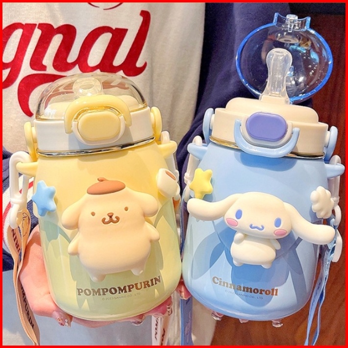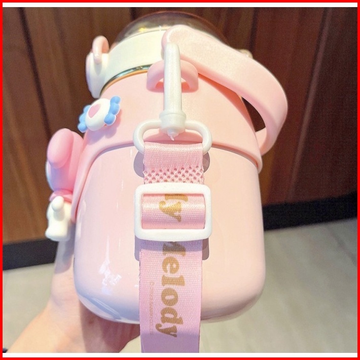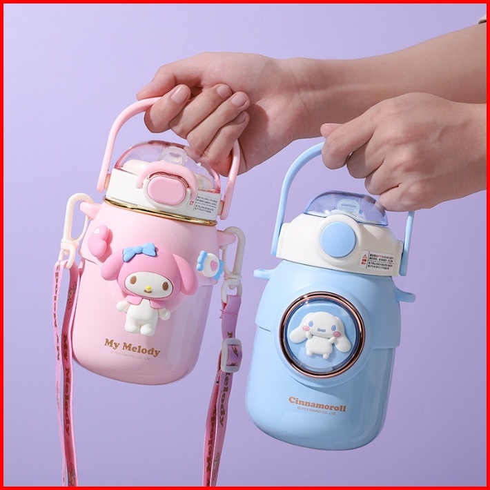 Botol Minum Stainless 316 Kuromi Cinnamoroll Sedot Anak Bertali Cangkir Tali Yang Dapat Disesuaikan Sendiri Dengan Cangk