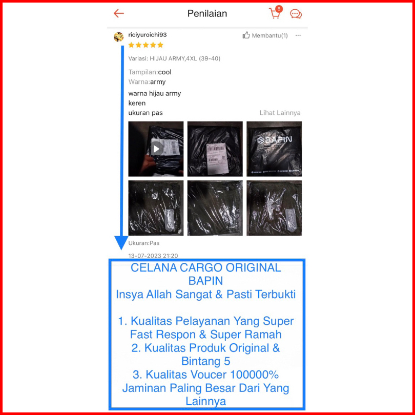 Bapin Celana Chino Hijau Army Katun S-5xl