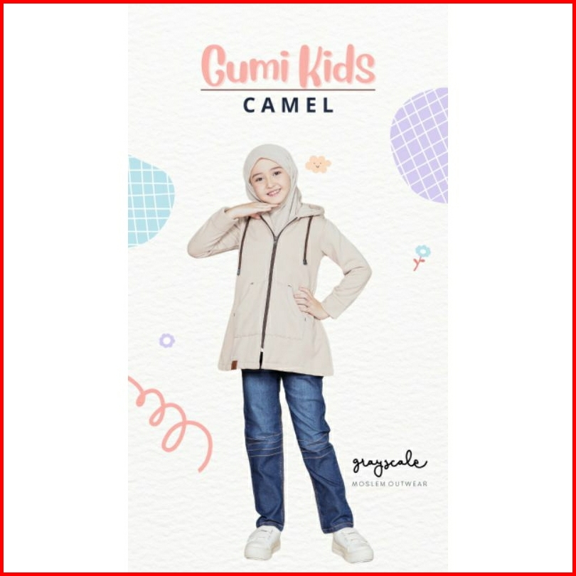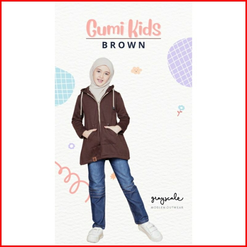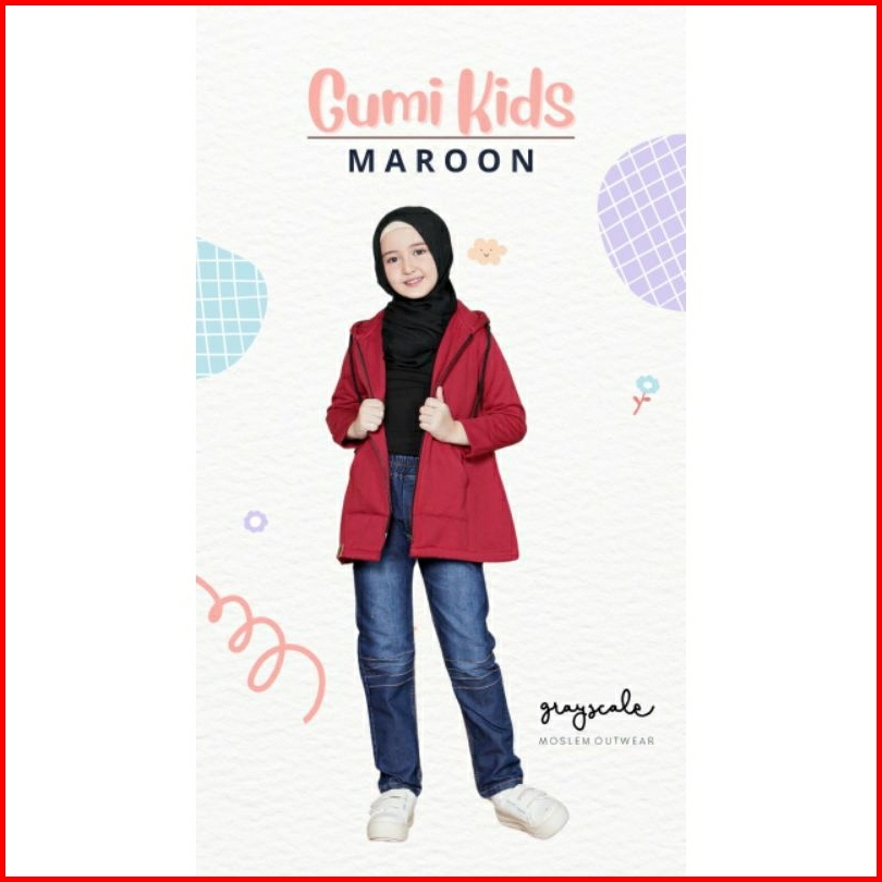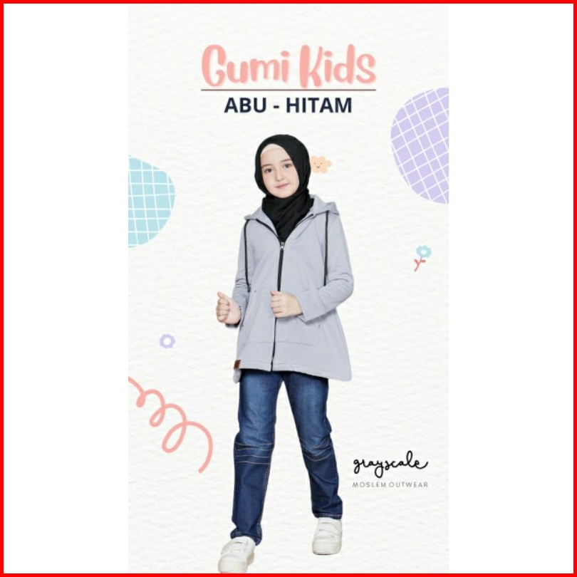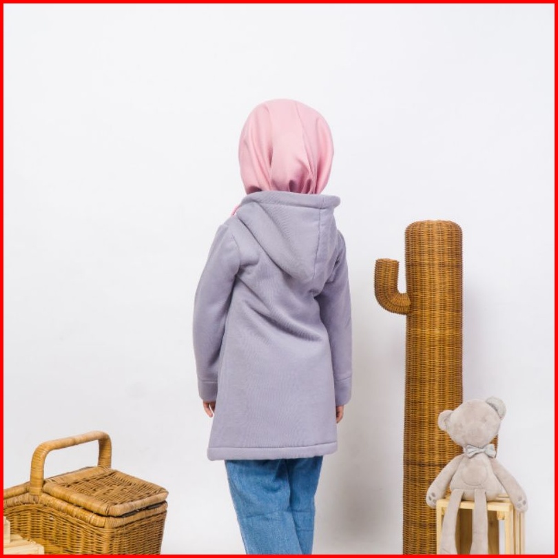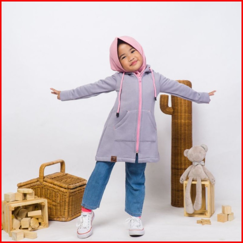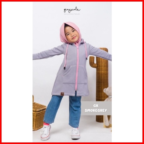 Jaket Anak Cewek Lembut Lucu Hoodie Gumi Abu Pink