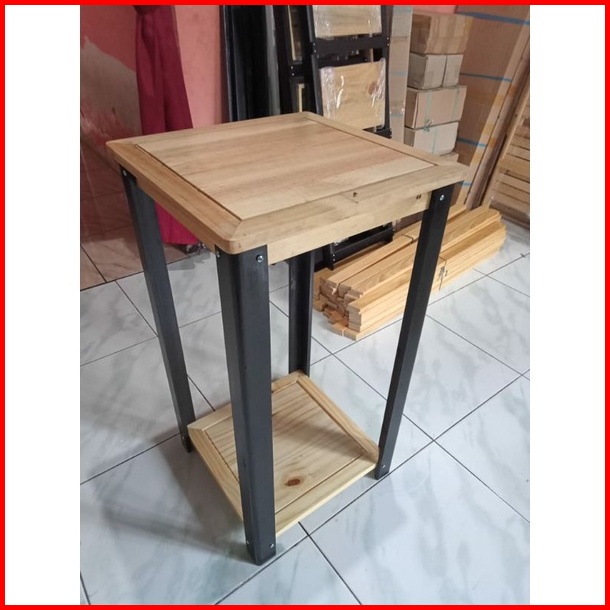 Meja Dispenser Kayu Pinus Solid 40x40x70 Cm