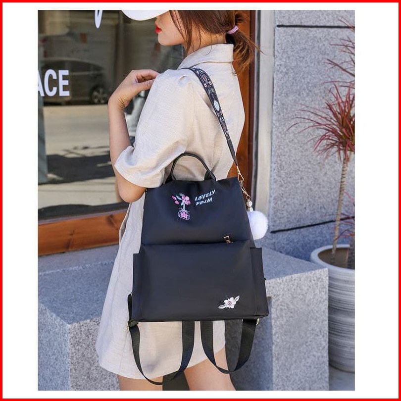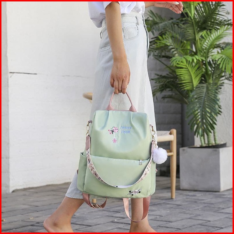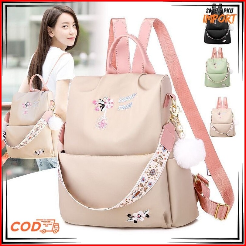 Best Seller Tas Ransel Laptop Wanita Modern Motif Bunga Gratis Gantungan 00001 Anti Air Import