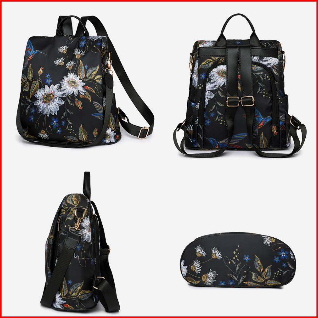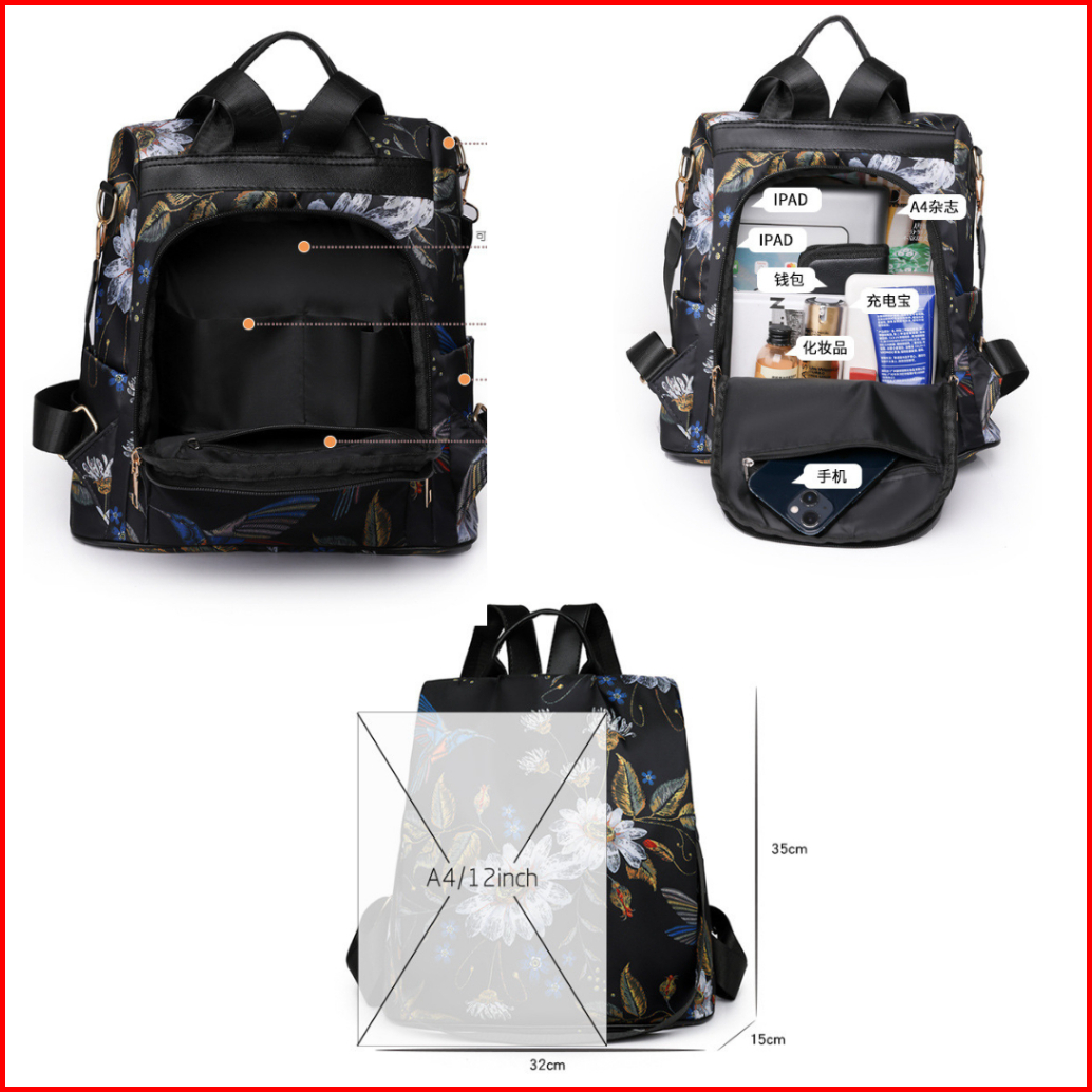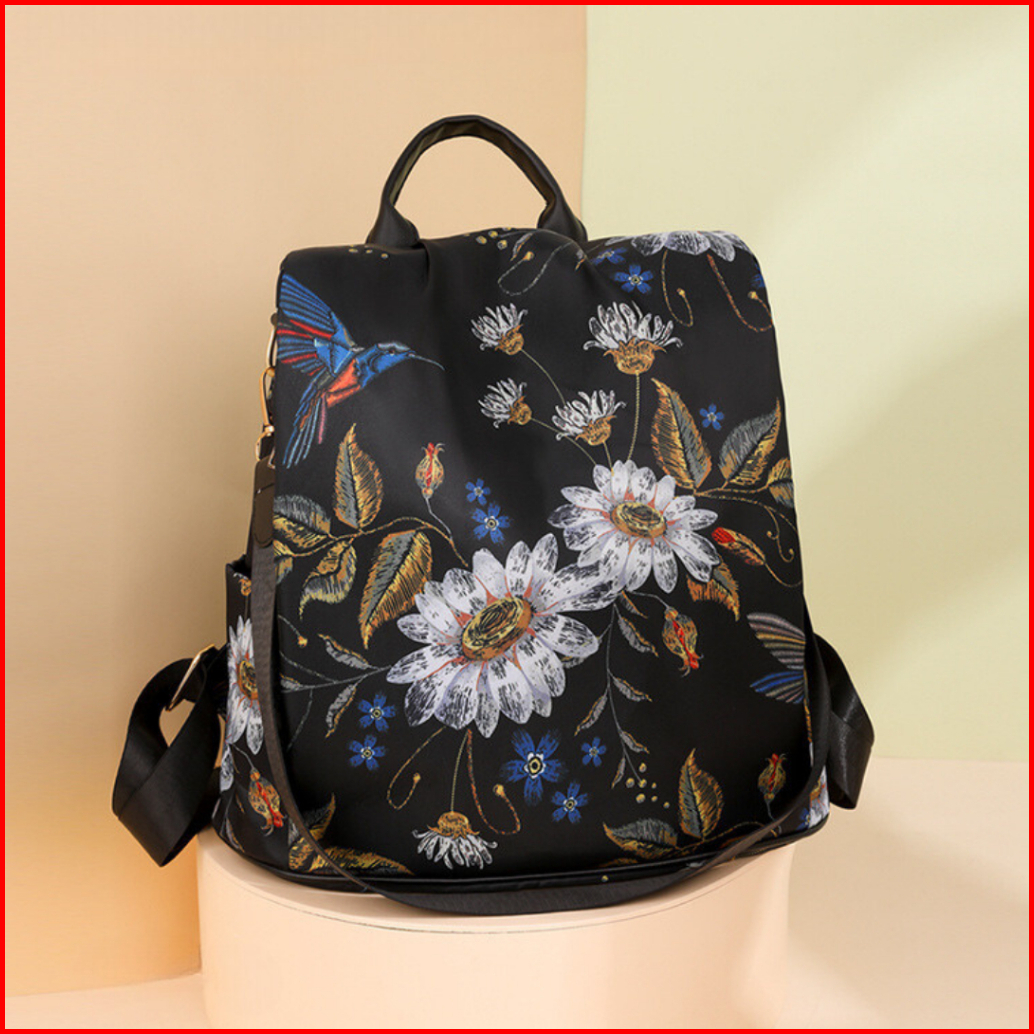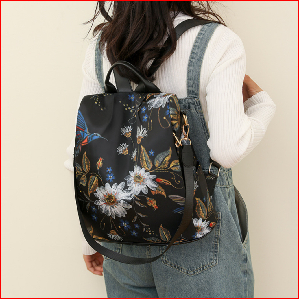 Tas Ransel Wanita Backpack Anti Air Motif Bunga Hitam Xalvali Ta946b5 Korea Remaja Cewek Kekinian Gendong Punggung Sekol