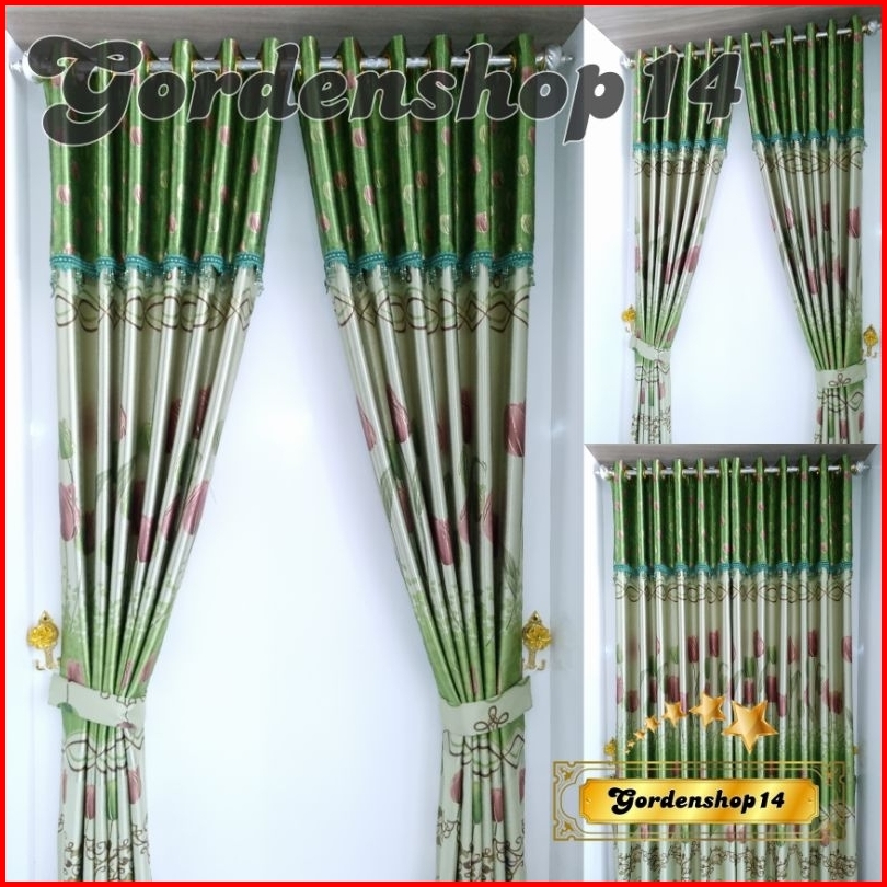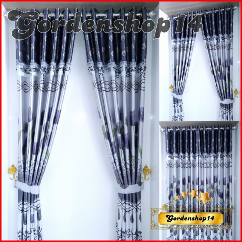 Gorden Blackout Gliter Bunga Tulip Renda Poni Tempel Jendela Pintu Kamar Minimalis