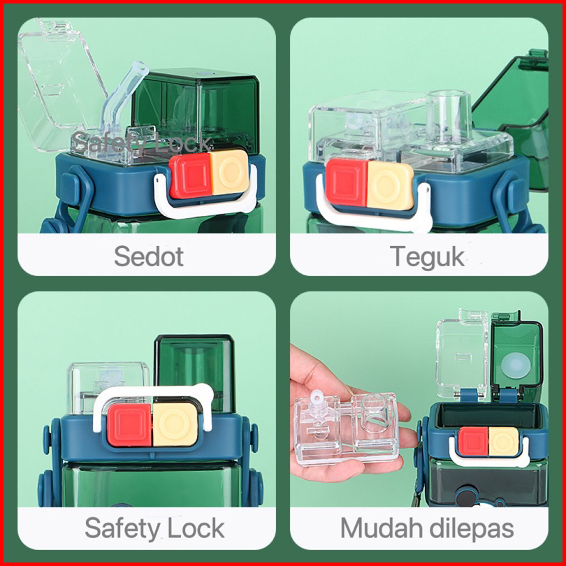 Botol Minum Anak 2in1 Sedot Teguk 570ml Tritan Material Square