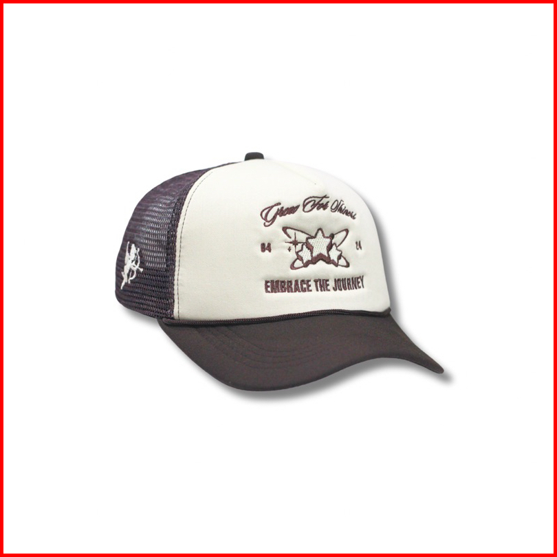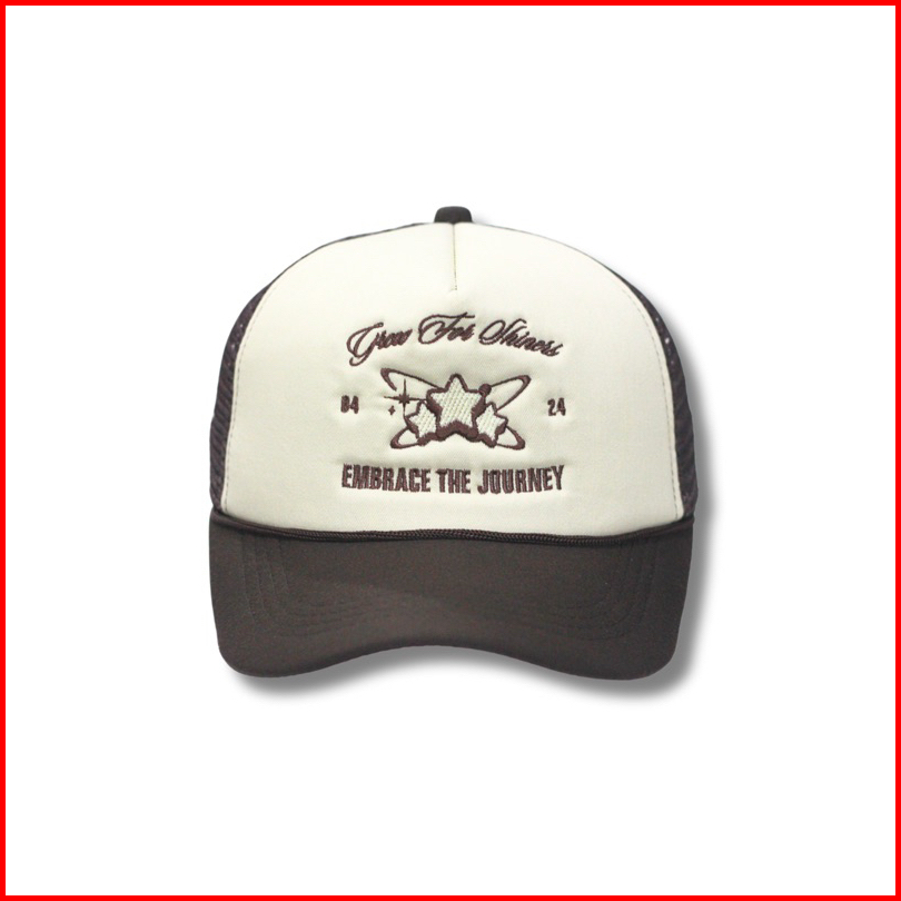 Shine Boyer- Trucker Hat Brown Broken White Grow For Shiners Fre Sticker Pin Dan Box Packing
