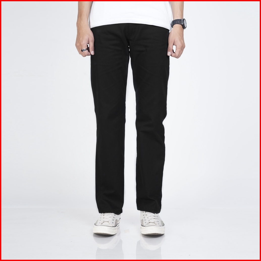 Volkvog Jeans Celana Panjang Chino Genova Pria Slim Straight Hitam
