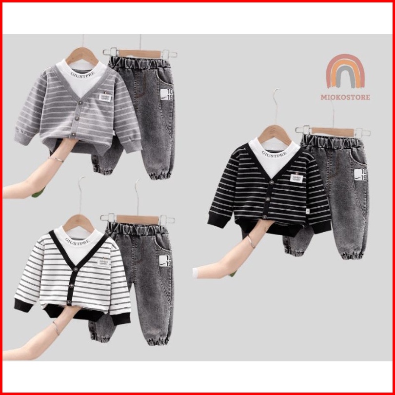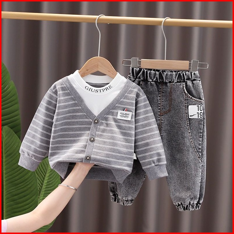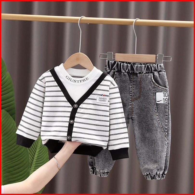 Setelan Sweater Anak Laki-laki Import Motif Strip