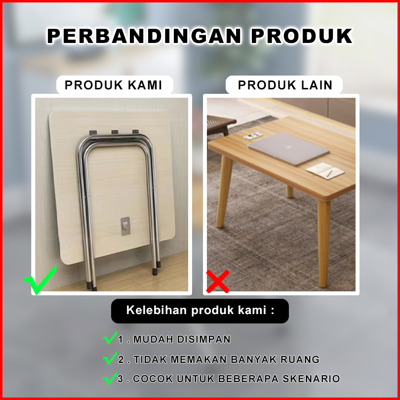Meja Lipat Portable Polos Bahan Besi Fiberboard Dilapisi Hpl Meja Makan Ruang Tamu Serbaguna High Quality Z2a1