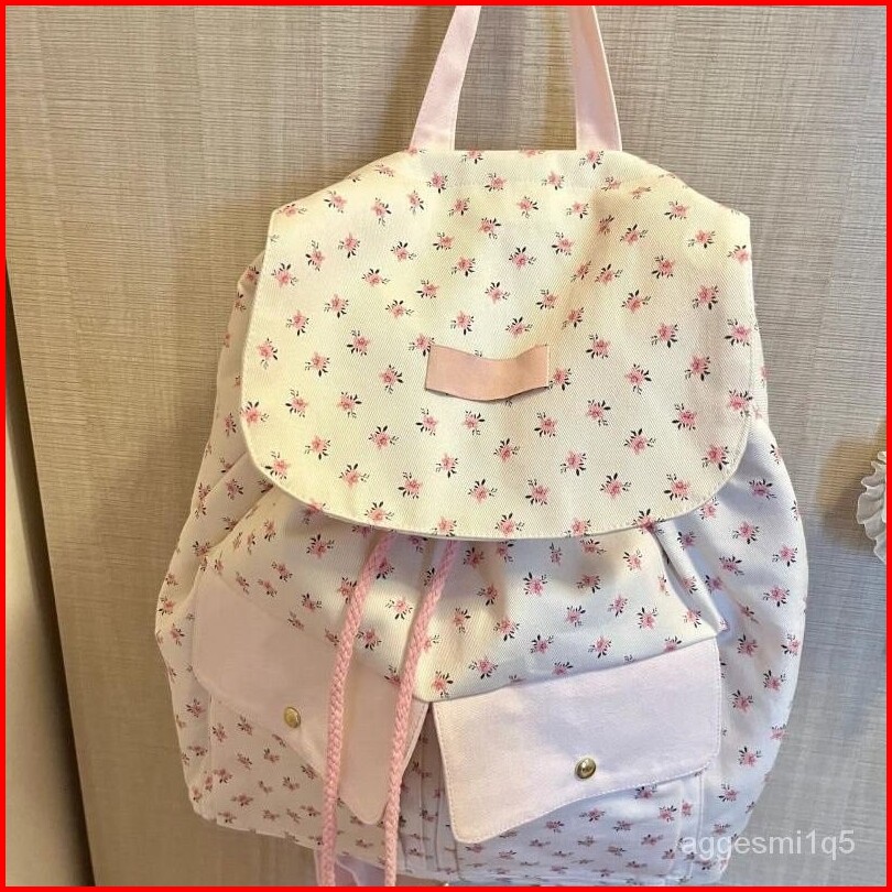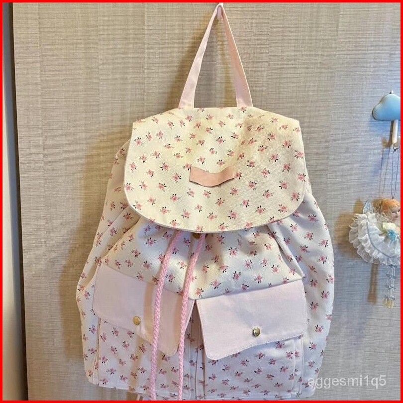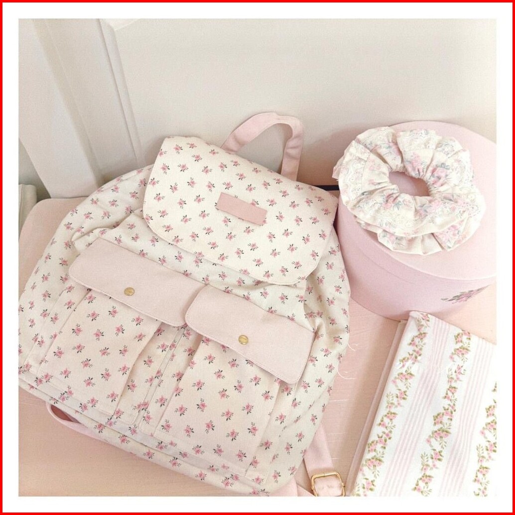 Tas Bahu Ins Kanvas Bunga Lucu Tas Sekolah Wanita Berkapasitas Besar Tas Korean Style Tas Ransel Laptop Backpack