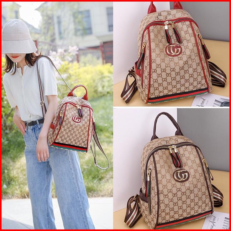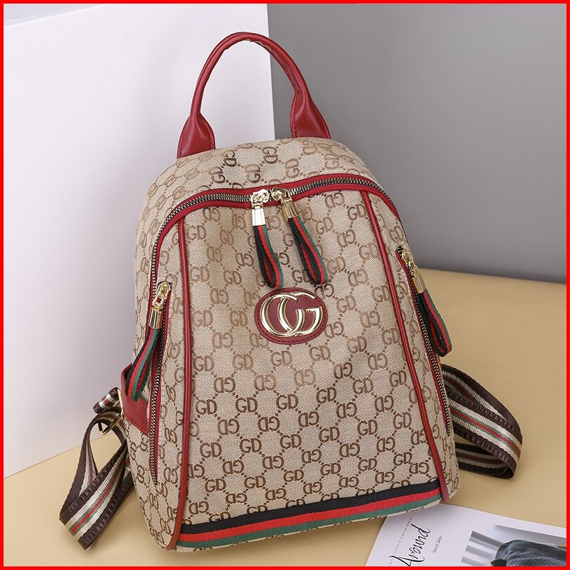 Bj16128 - Black Red - Tas Ransel Punggung Backpack Canvas Fashion Wanita Import Termurah Terlaris Bagstore Jakarta Bq308