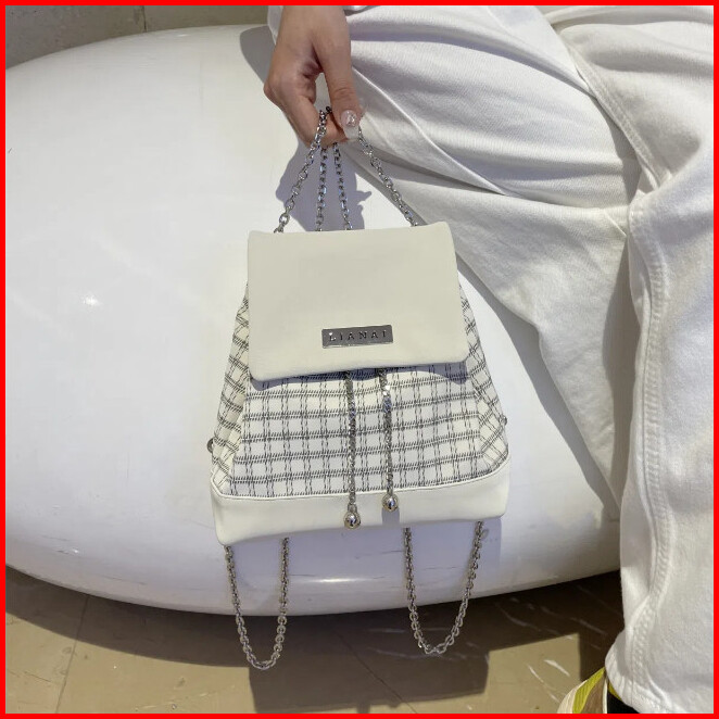 Codtas Ransel Wanita Baru Y2k Manis Keren Gadis Silver Kisi Tas Bahu Rantai Tas Ransel Mini