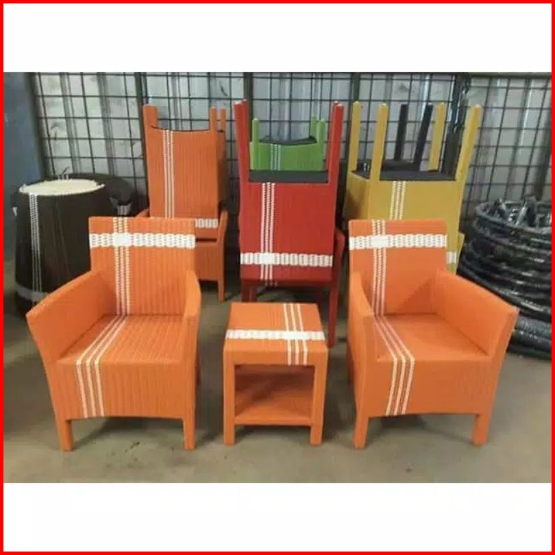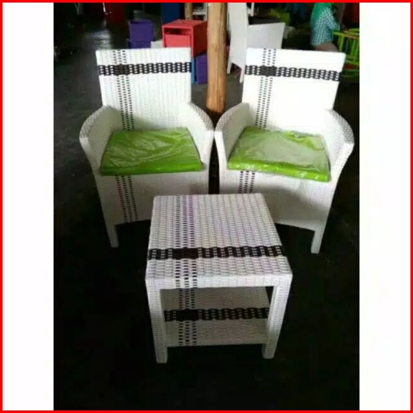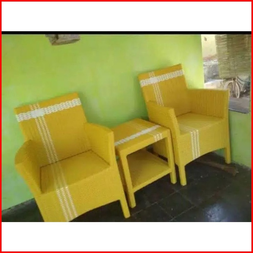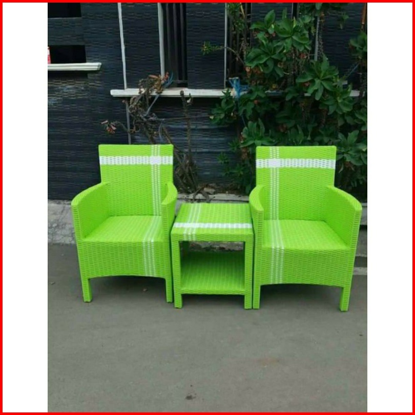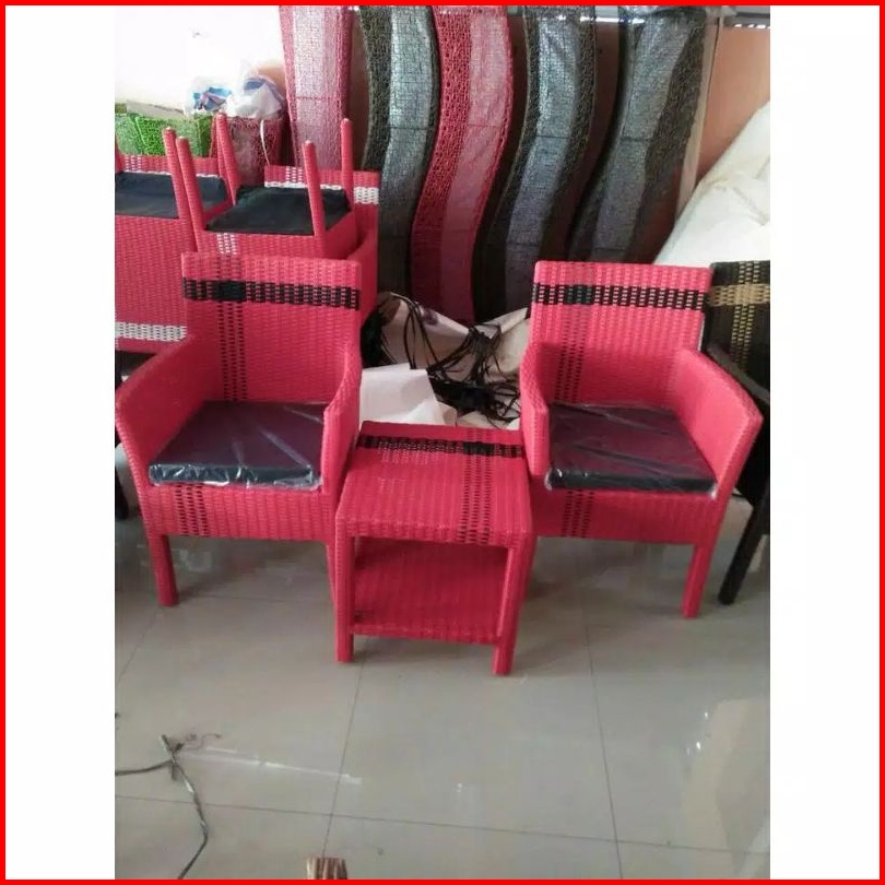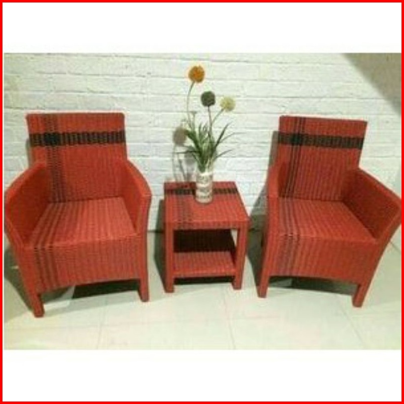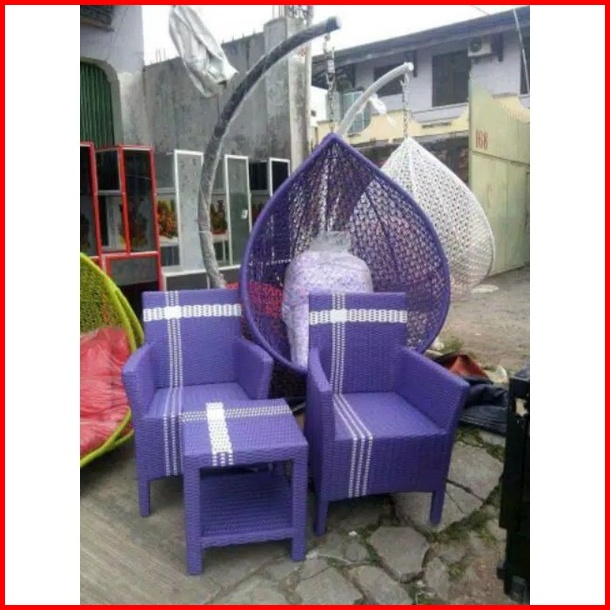 Kursi Teras Hawai Rotan Sintetis Kayu Mahoni