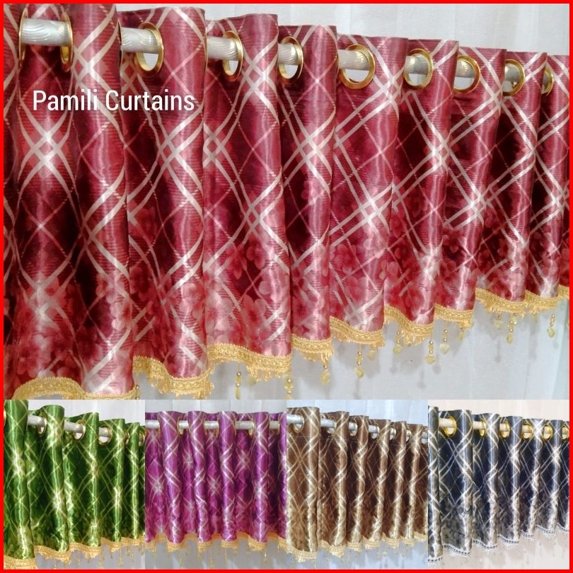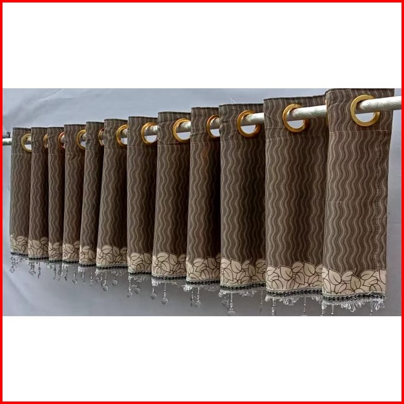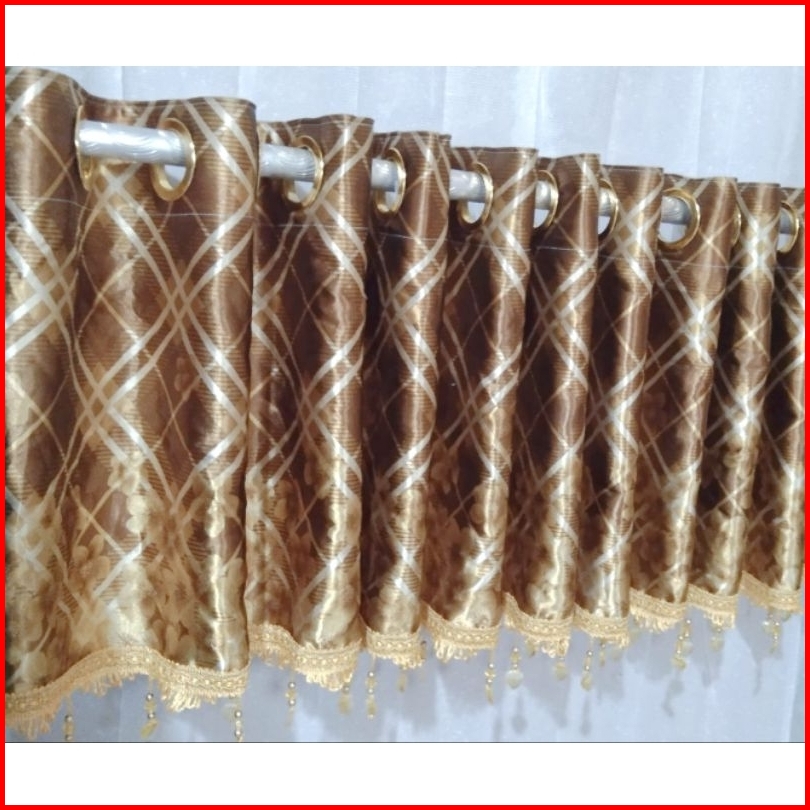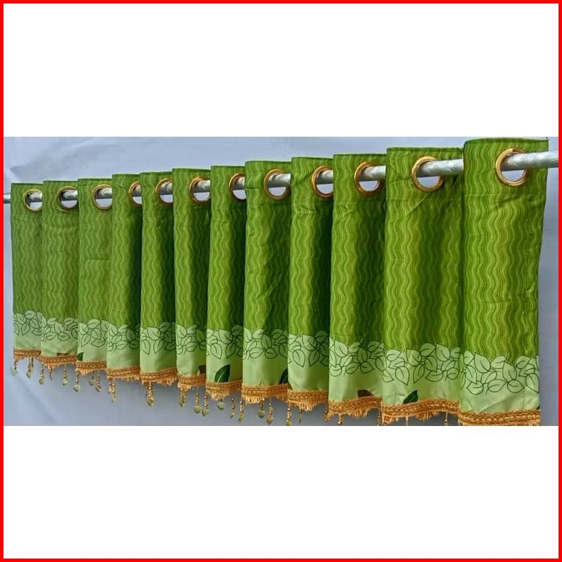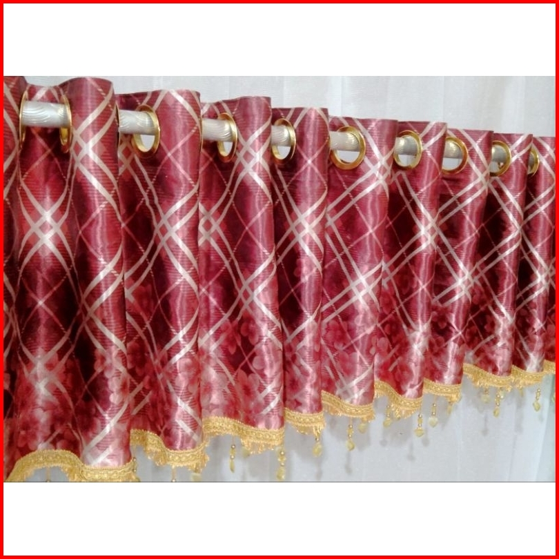 Gorden Poni Model Smokring Bahan Blackout Motip Bunga Silang Dekorasi Pintu