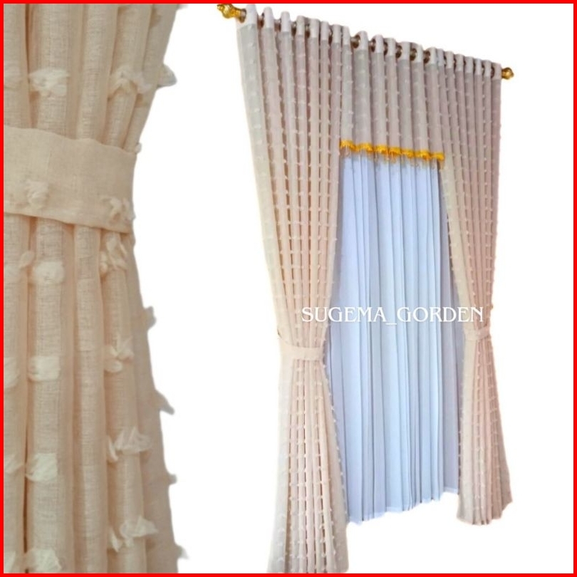 Gorden Jendela Pintu Satu Set Murah Mewah Terbaru Warna Cream Lengkap Dengan Poni Atas Pintu