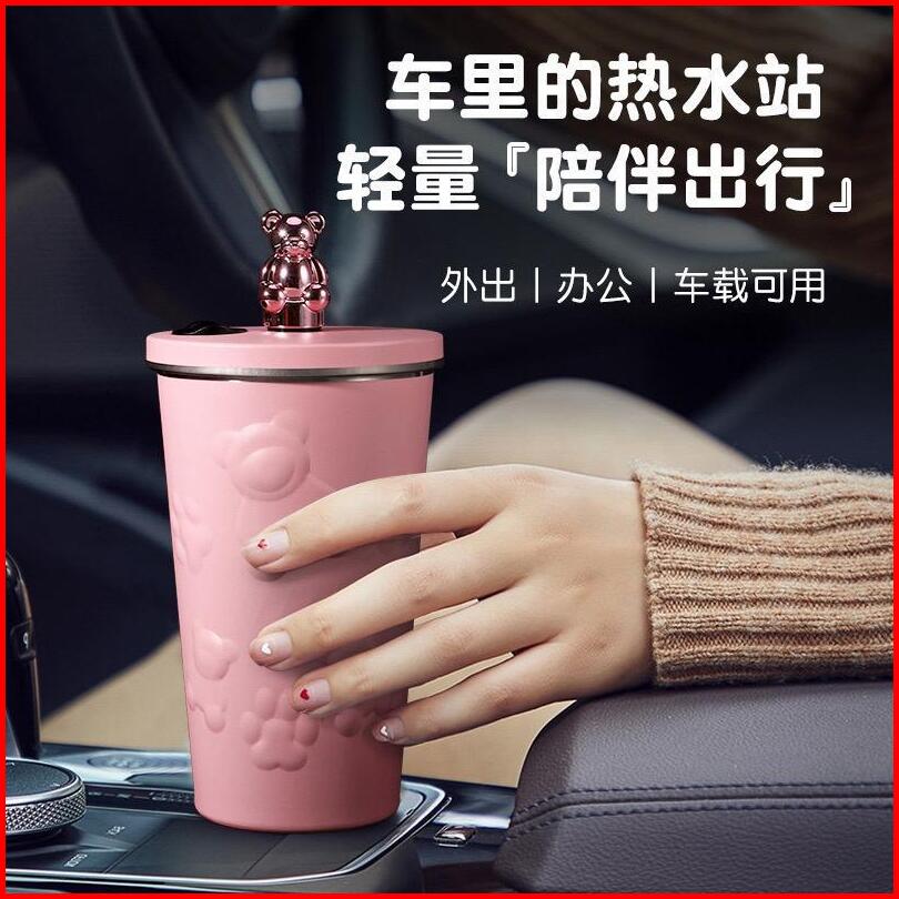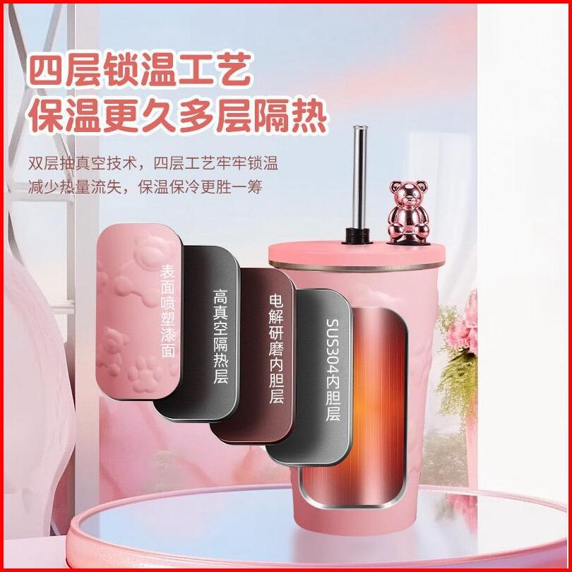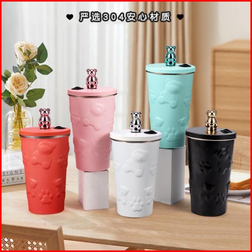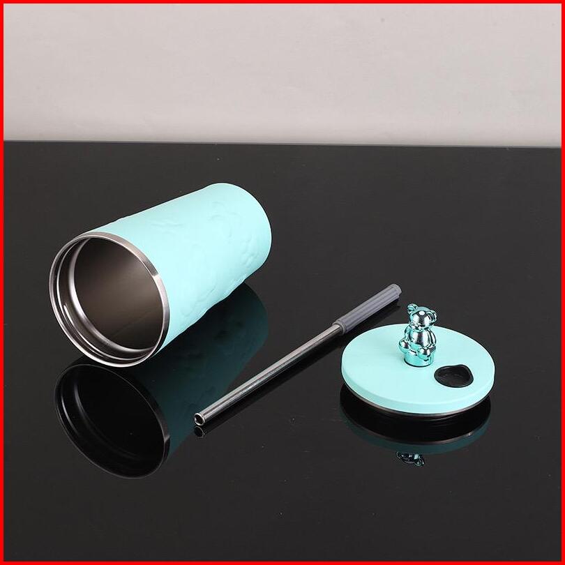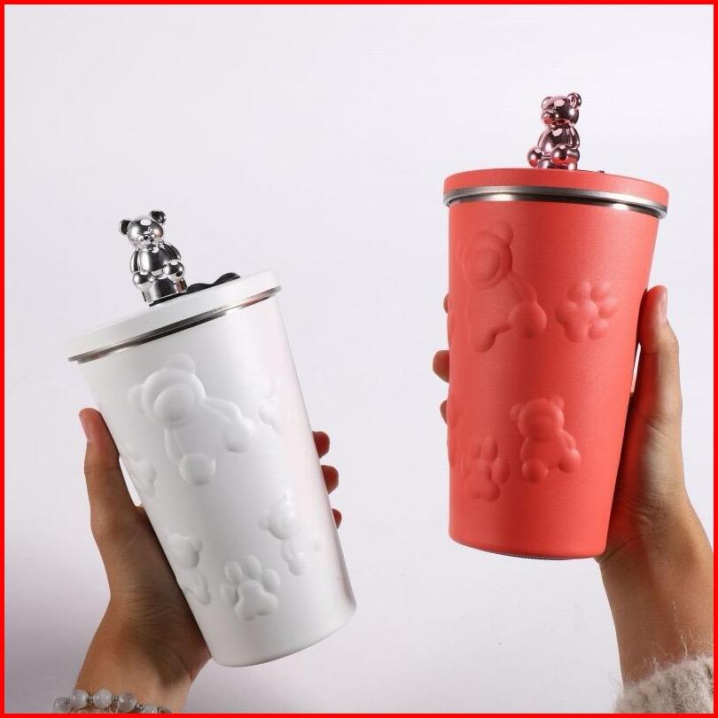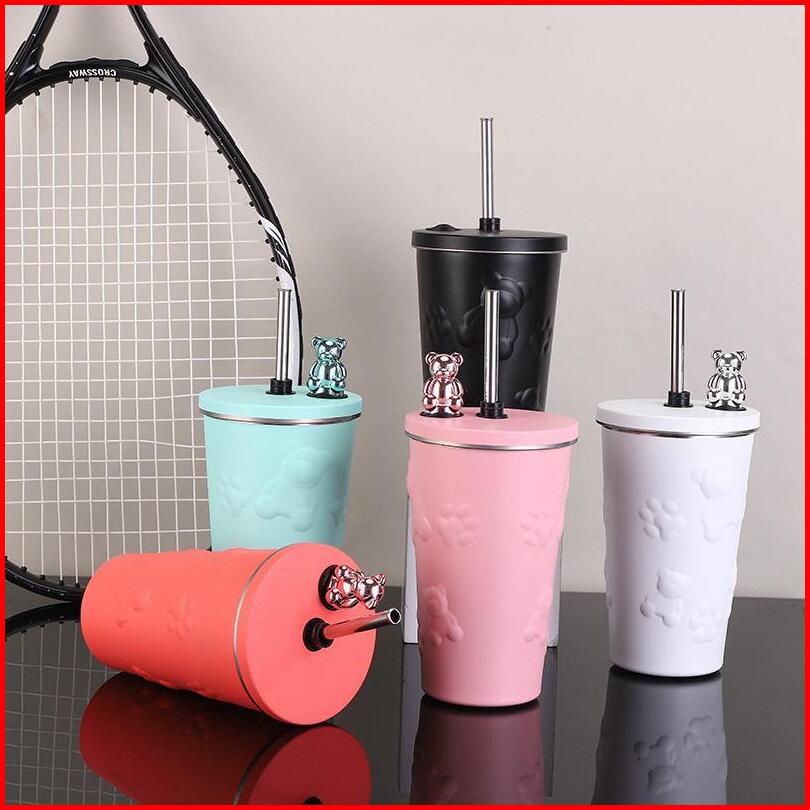 Dxuu Botol Termos Tumbler Bear Kopi-teh Vacuum Insulated Straw Sus 304 600ml