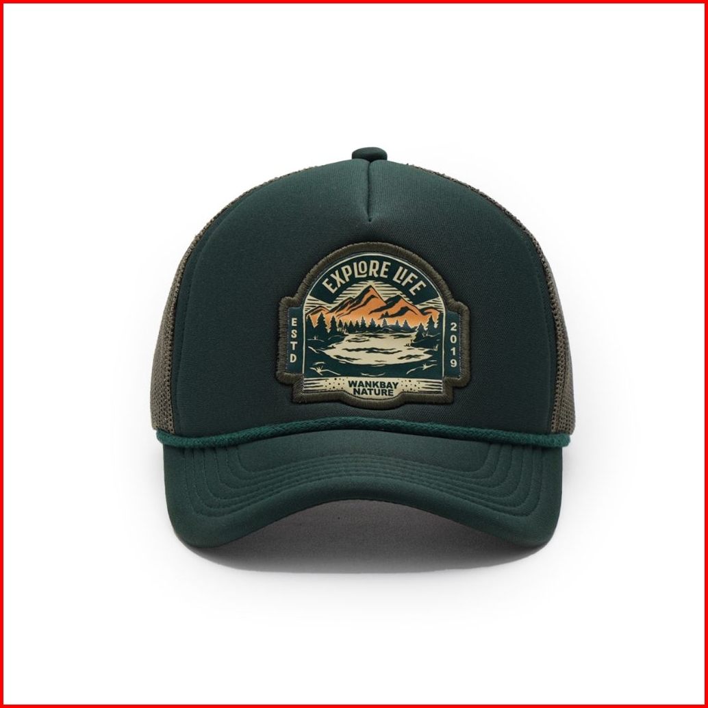 Wankbay Trucker Hat Plastisol Explore Life Full Green