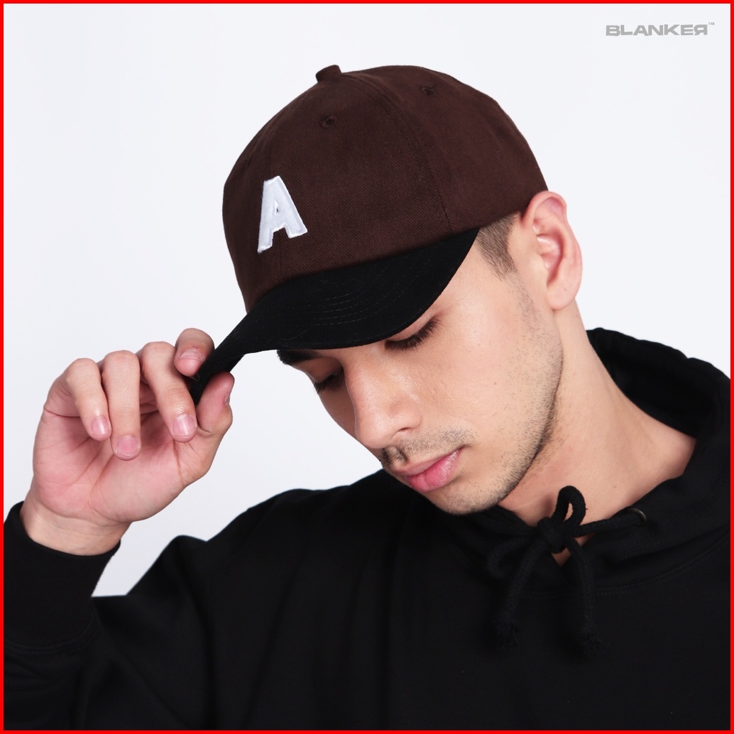 Blanker Topi Polo Cap Huruf A Coklat Gelap X Hitam