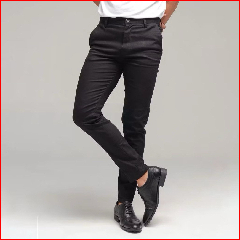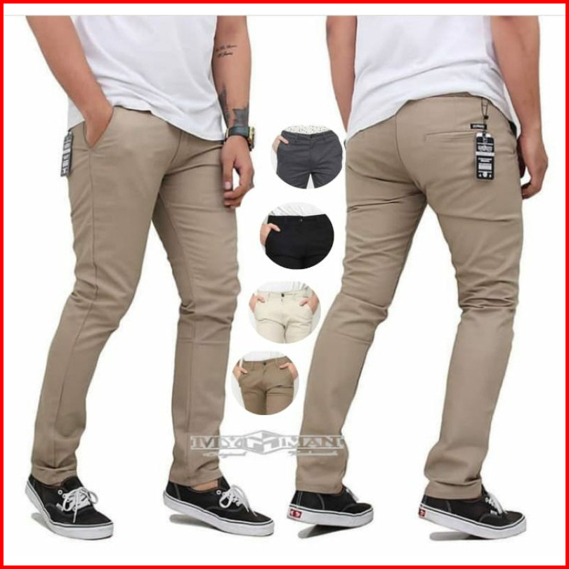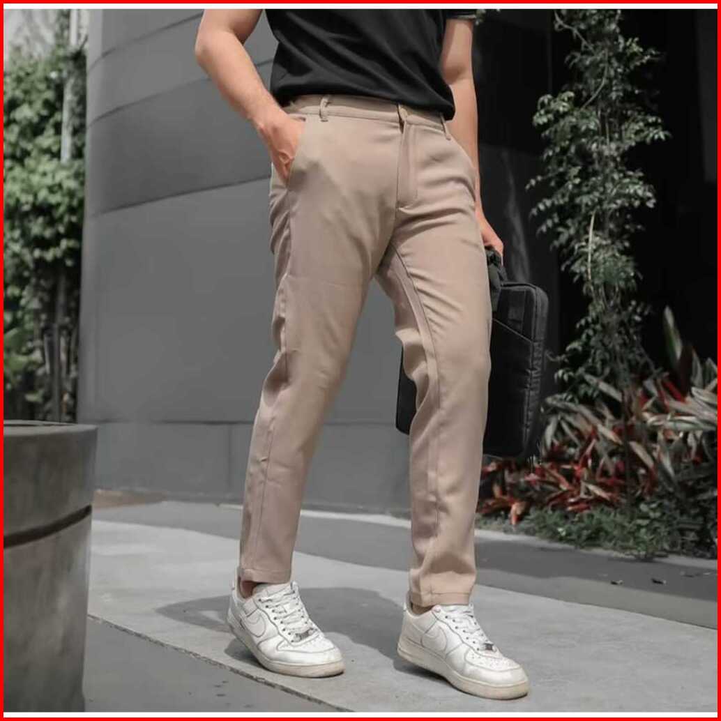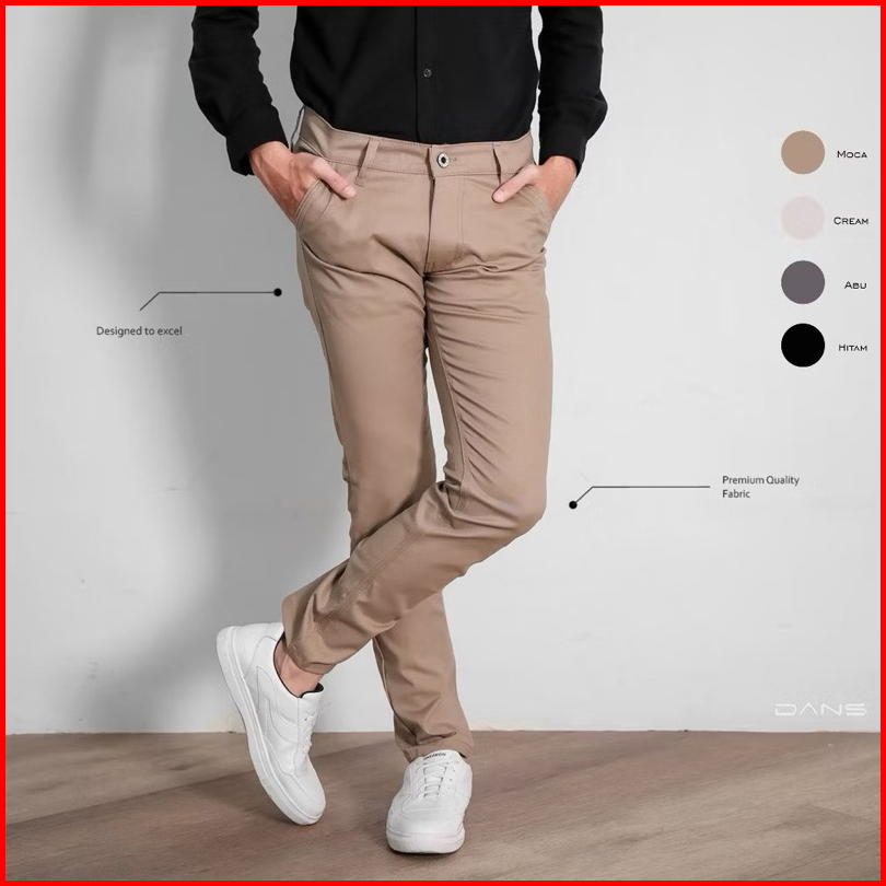Celana Chino Panjang Pria Original Bahan Premium Tebal Halus Stretch Cocok Untuk Semua Jenis Atasan 4warna Kream Hitam M