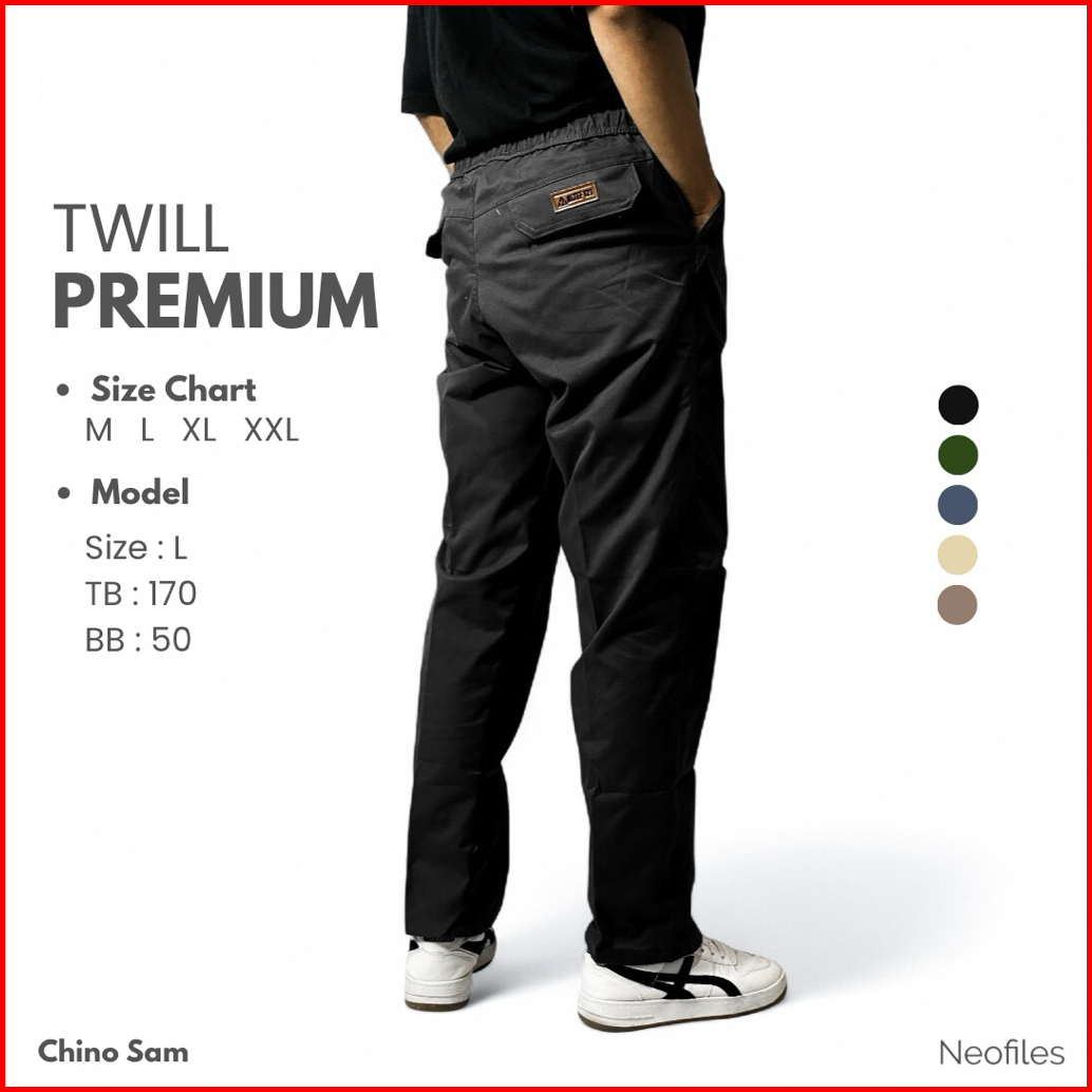Celana Sam Pria Chino Gombrong Bahan Twill Stretch Model Celana Cowok Terbaru