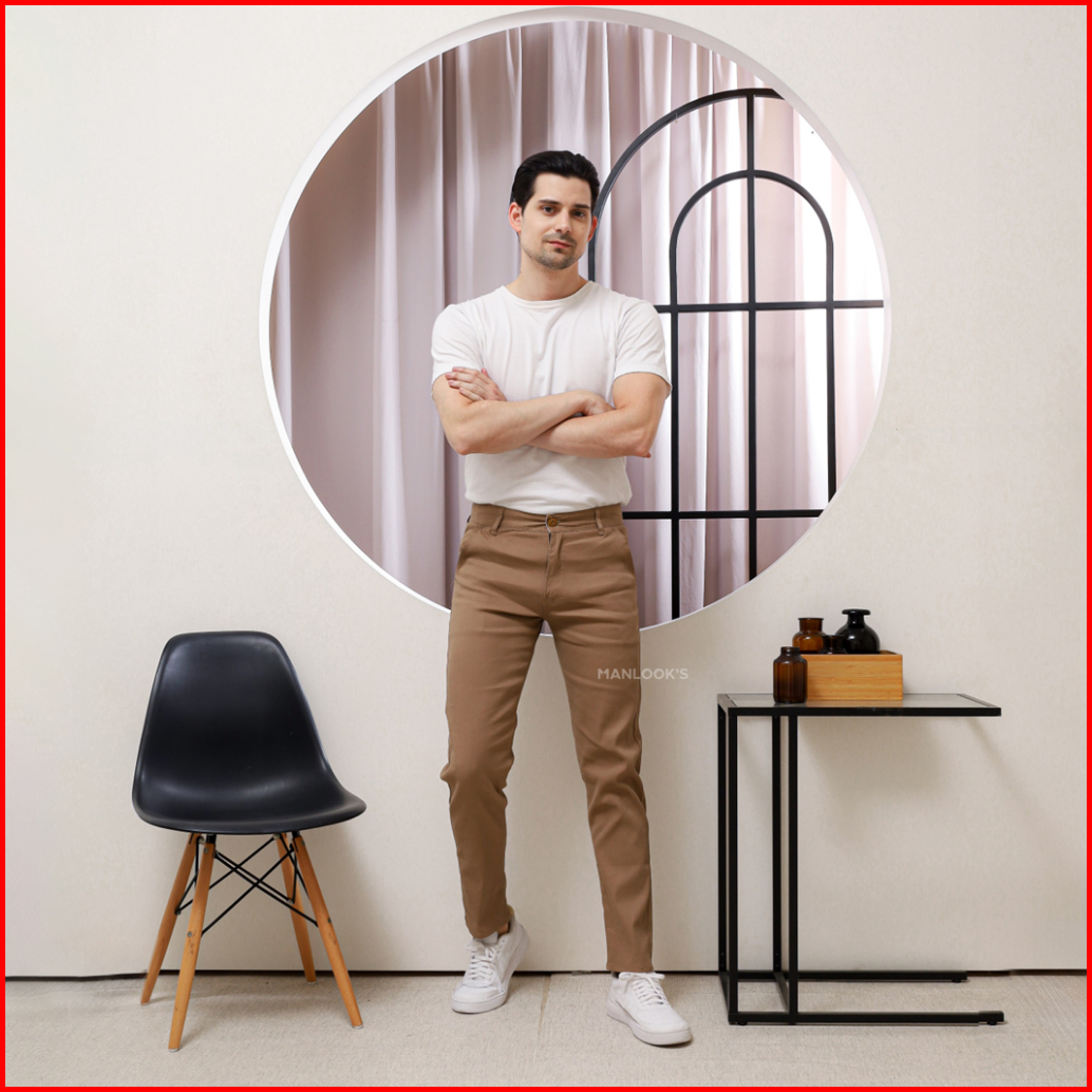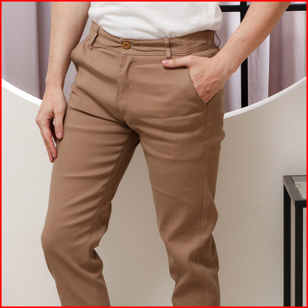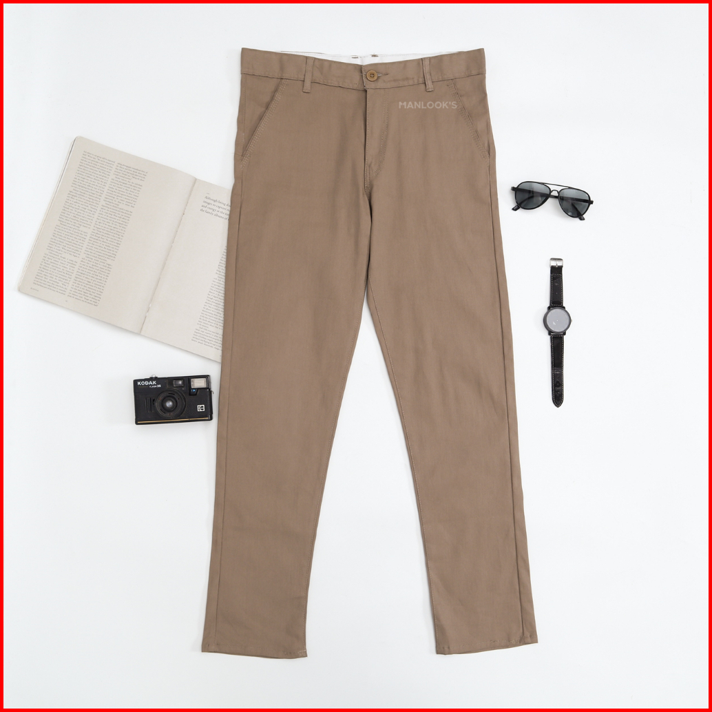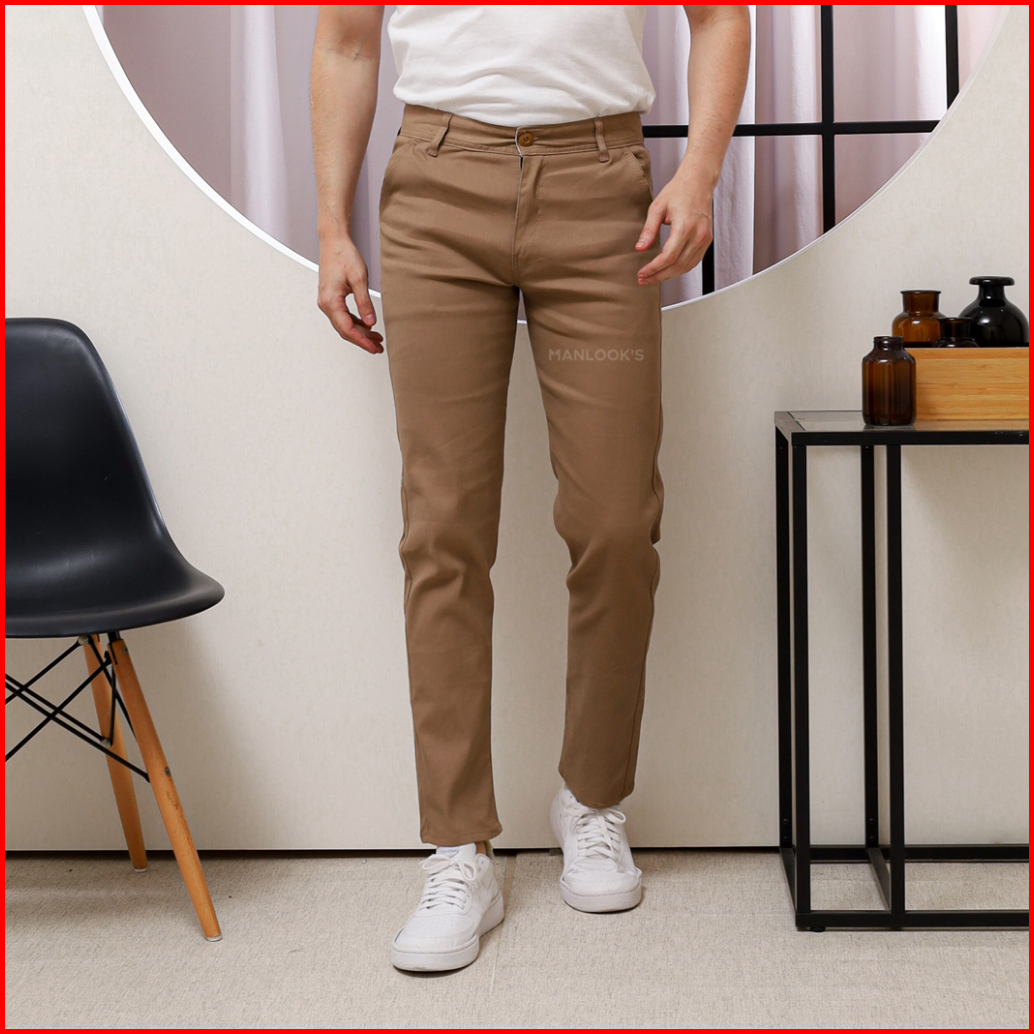 Manlooks Celana Panjang Pria Chinos Twill Stretch Slim Fit Premium Warna Mocca Size 27-38