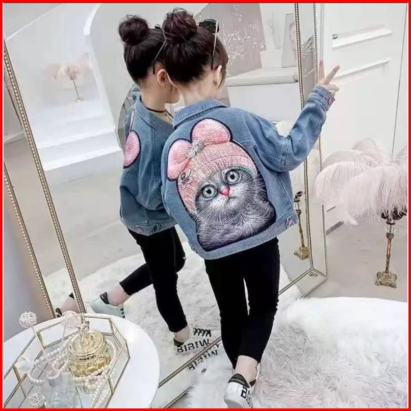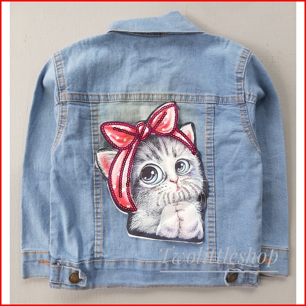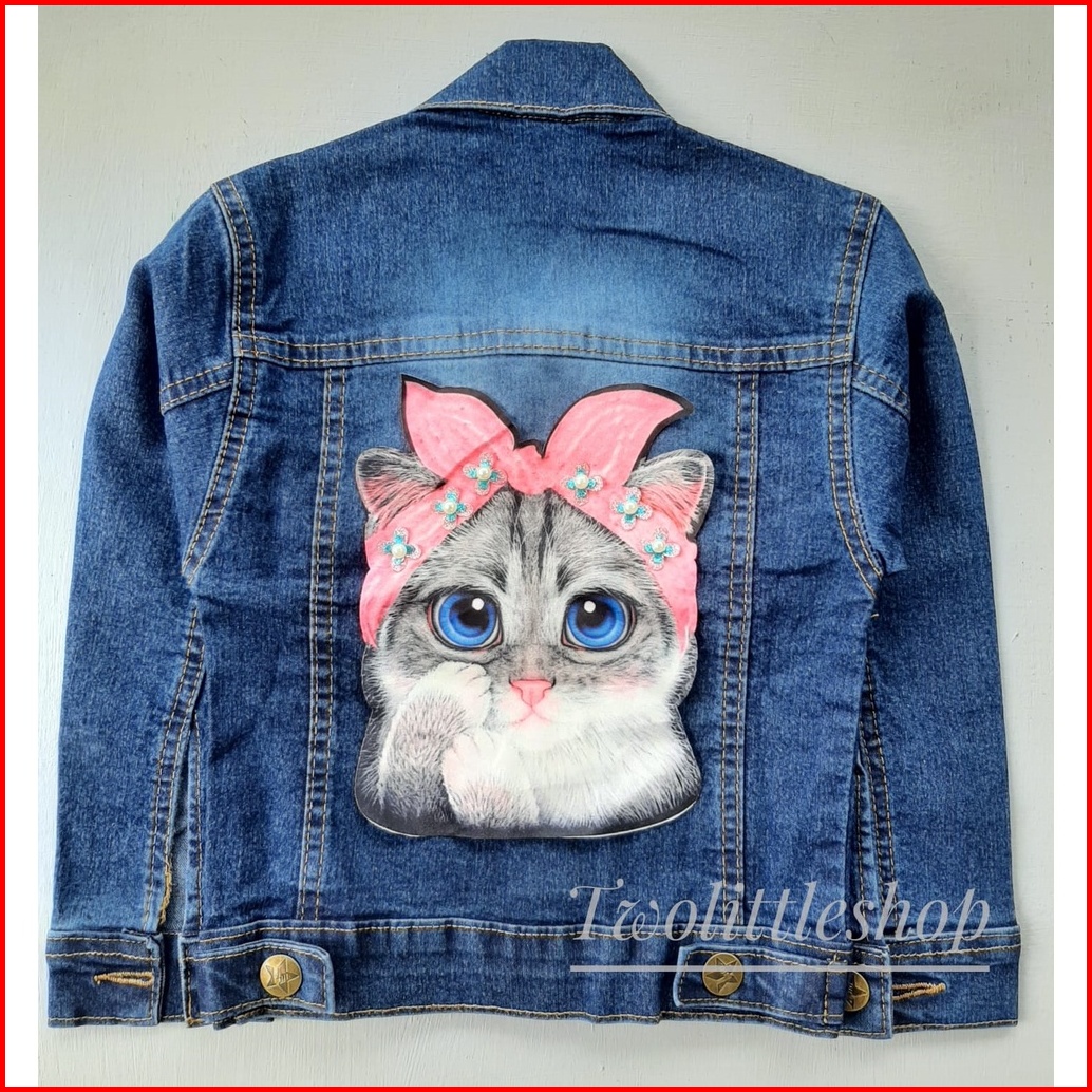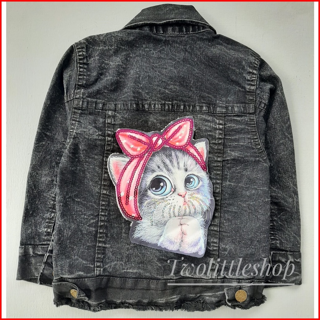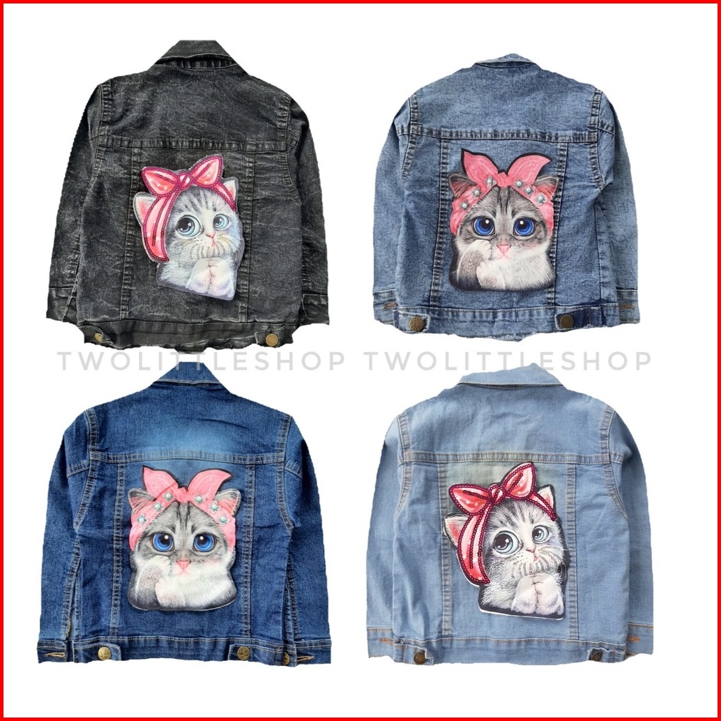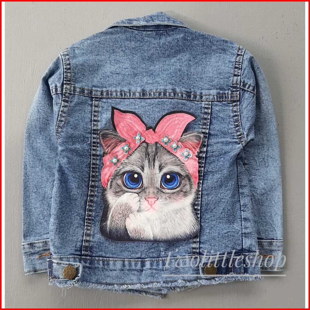 Jaket Jeans Anak Bleusandwash Black Sandwash Bio Blitz Biowash Motif Kucing Led