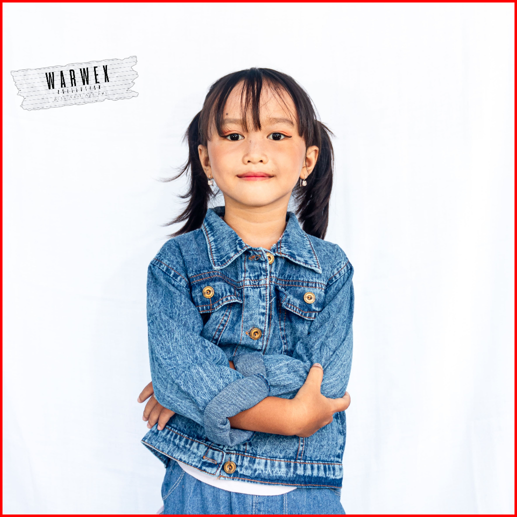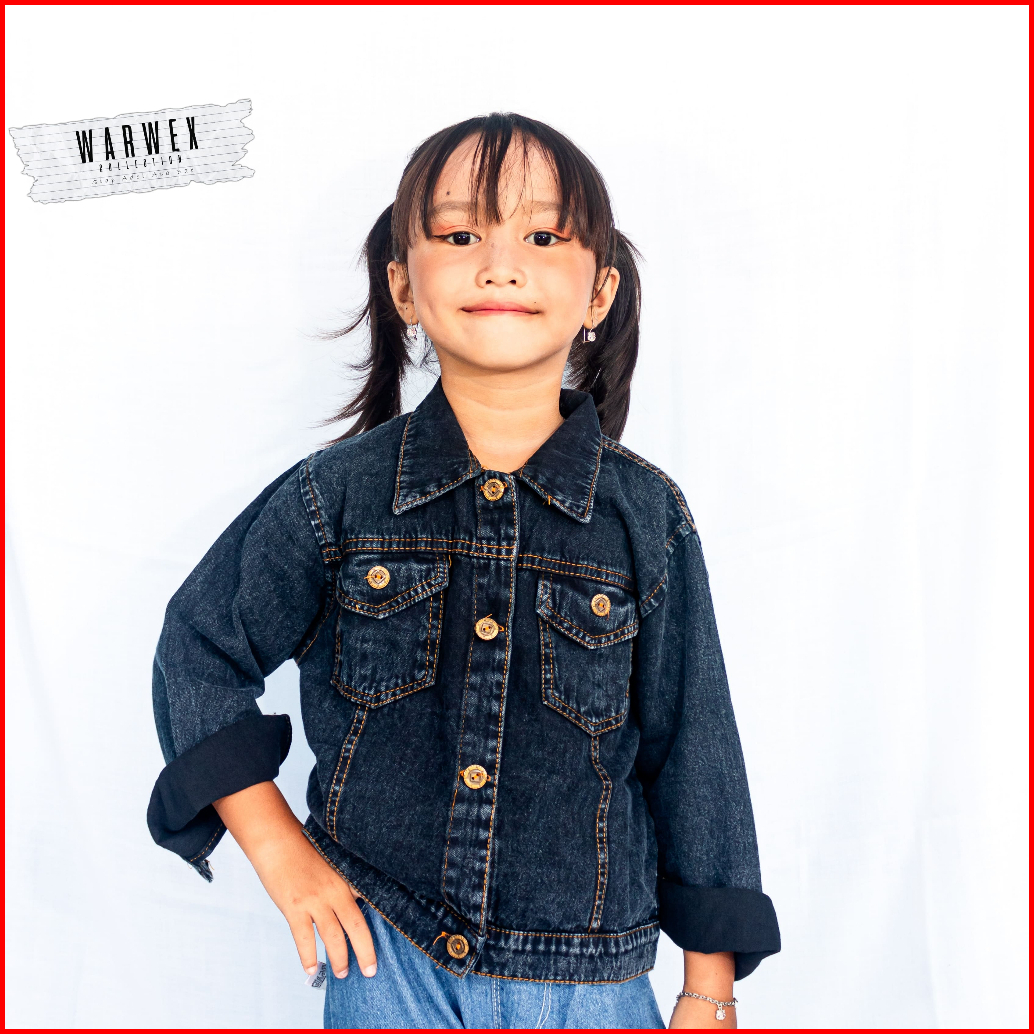 Jaket Jeans Anak Perempuan Usia 1-8tahun Terlaris Dan Terbaru 2024 Snowblack Snowblue Ketebalan 09oz