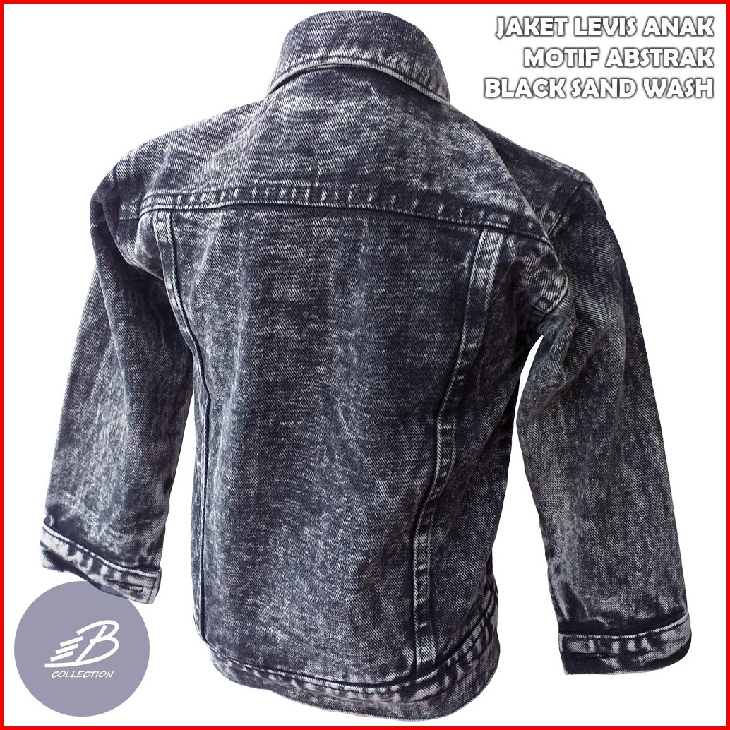 Jaket Jeans Anak Sandwash Motif Abstrak - Jaket Denim Anak Acid Snow Sand Wash Usia 1-12 Tahun Ukuran Tanggung