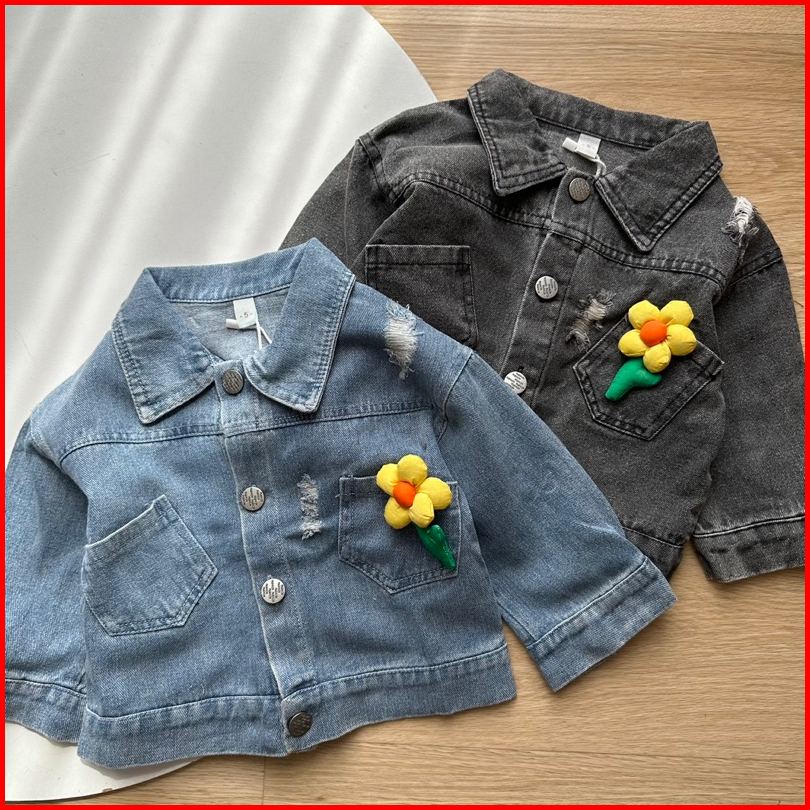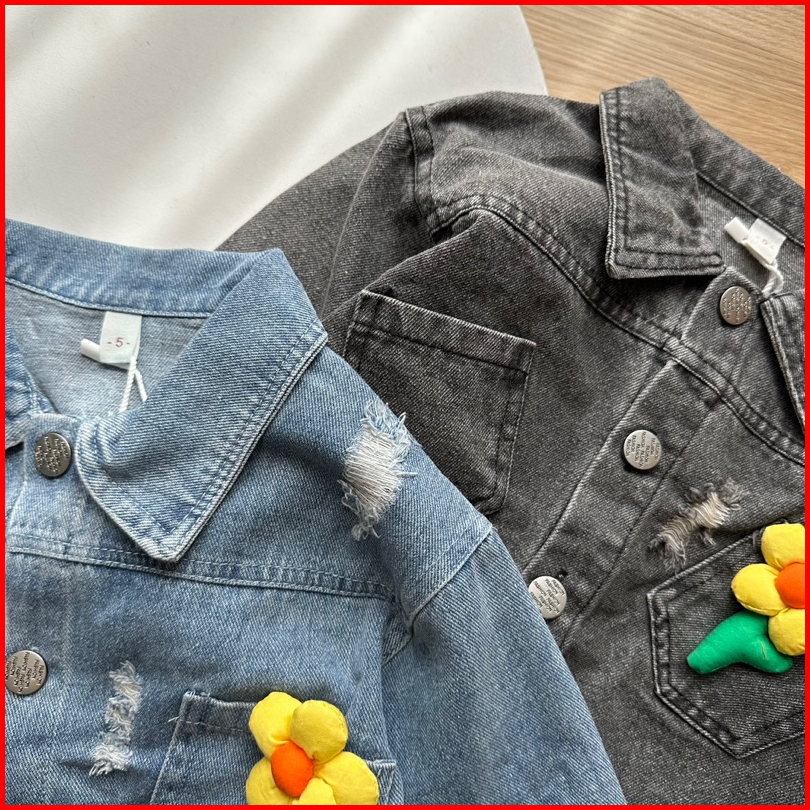 Embroidery Flower Jacket Jeans Anak Bunga-bunga Premium