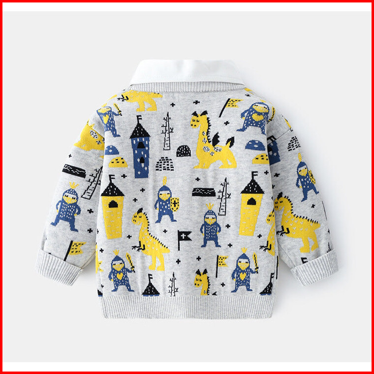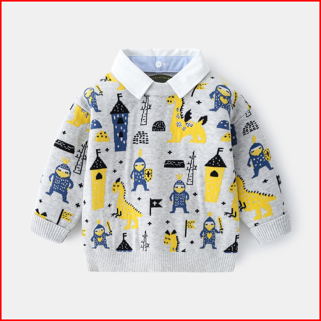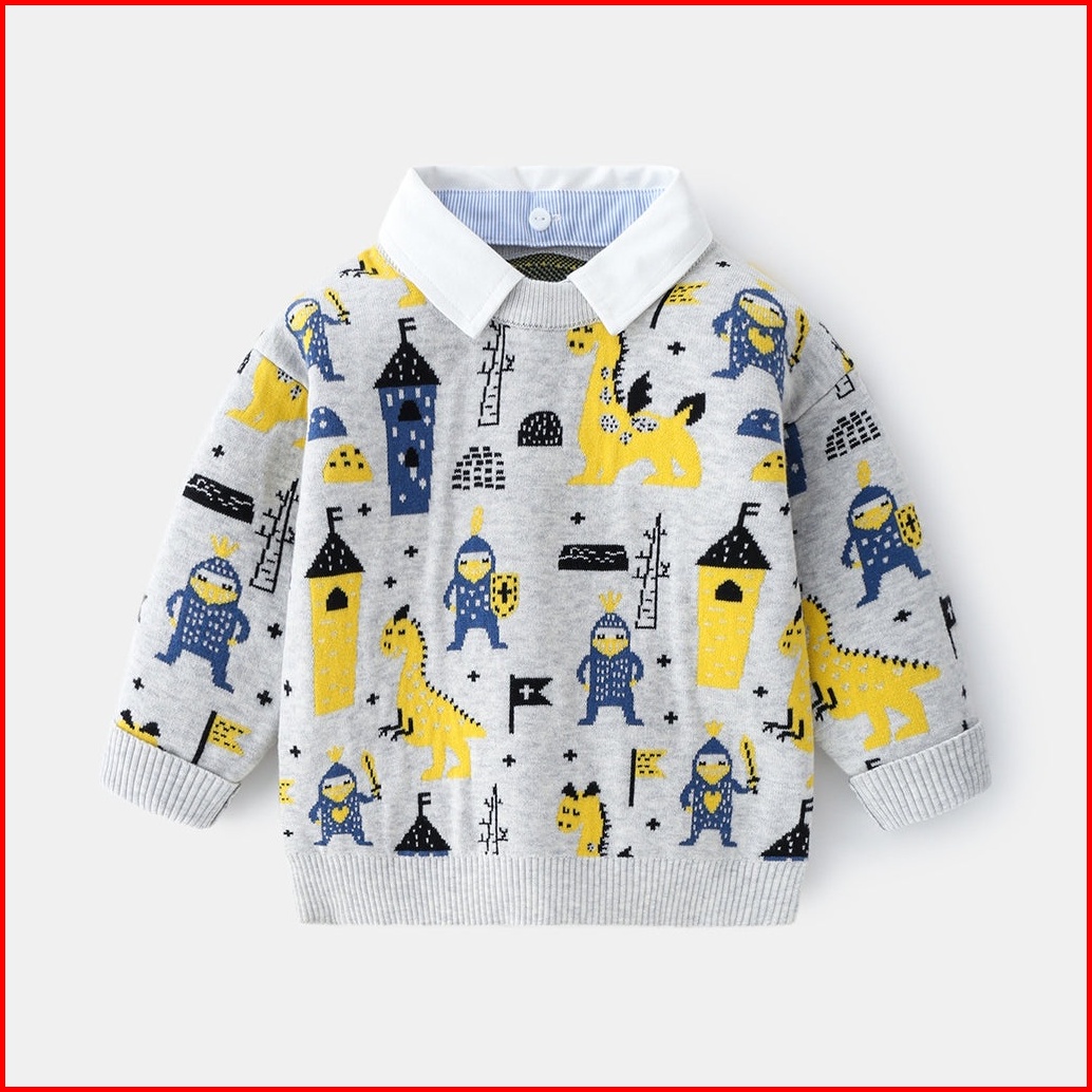 513585 - Atasan Sweater Polo Kerah Lengan Panjang Anak Laki-laki - Motif Knight And Dragon