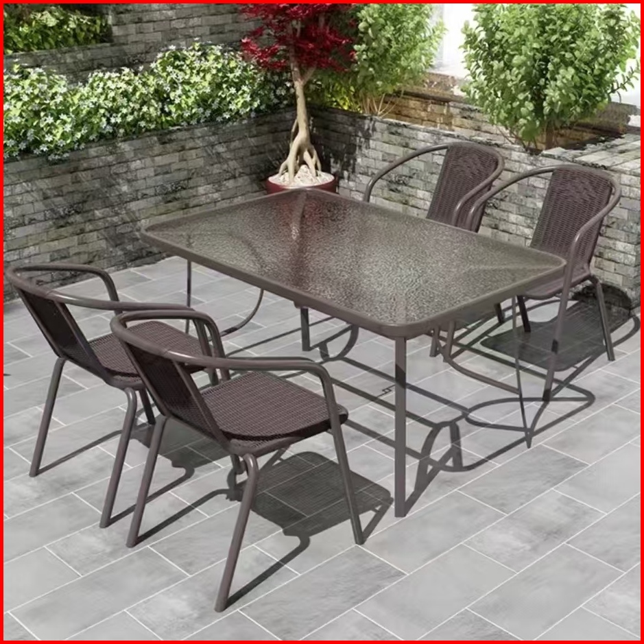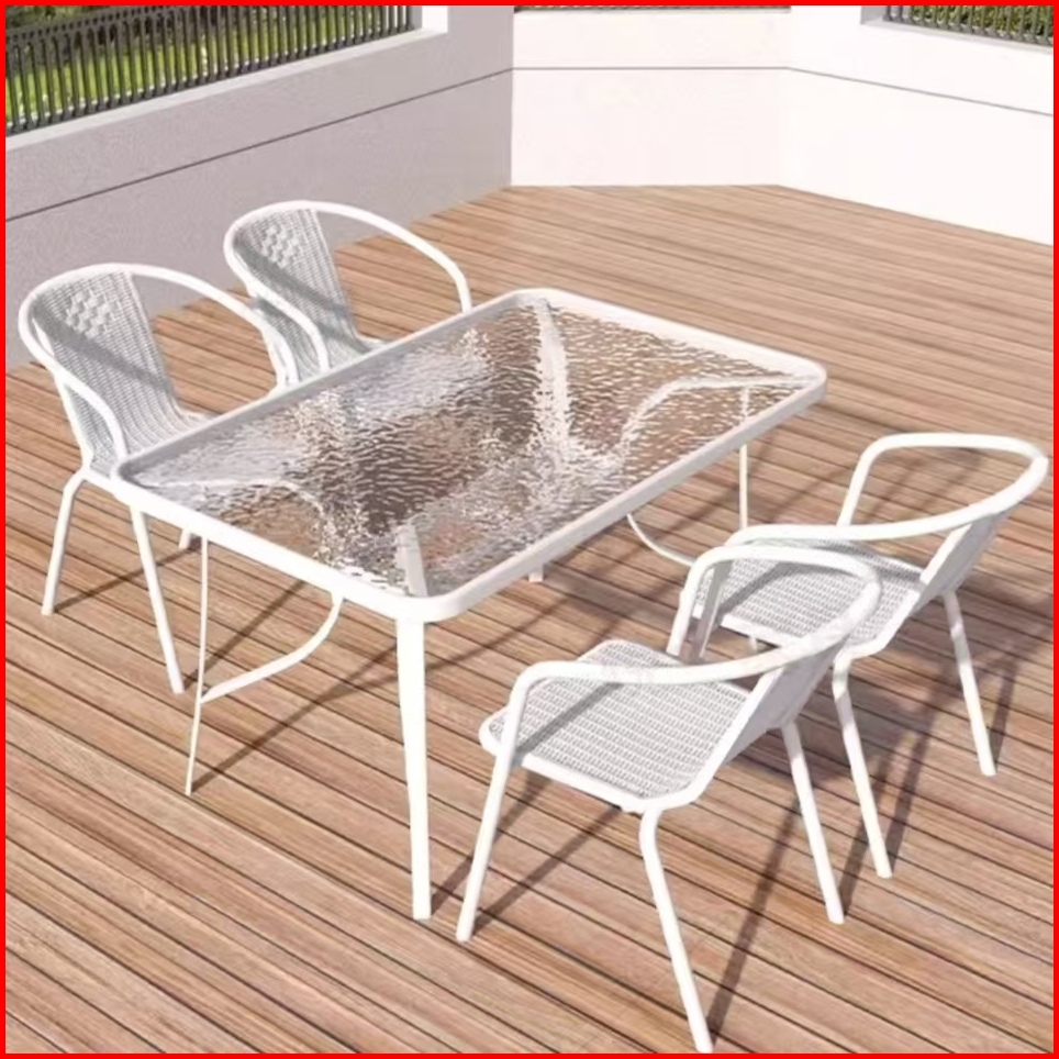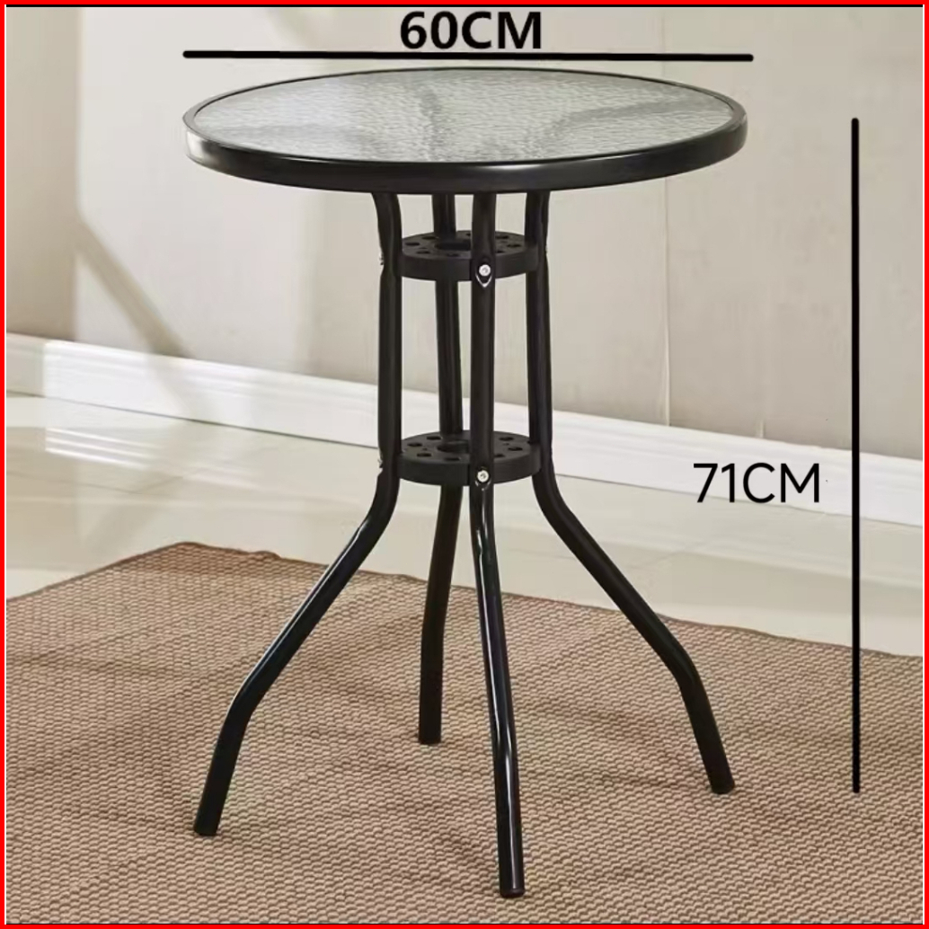 Furnibest Meja Outdoor Meja Teras Meja Taman Meja Makan Meja Bundar Kaca Meja Cafe