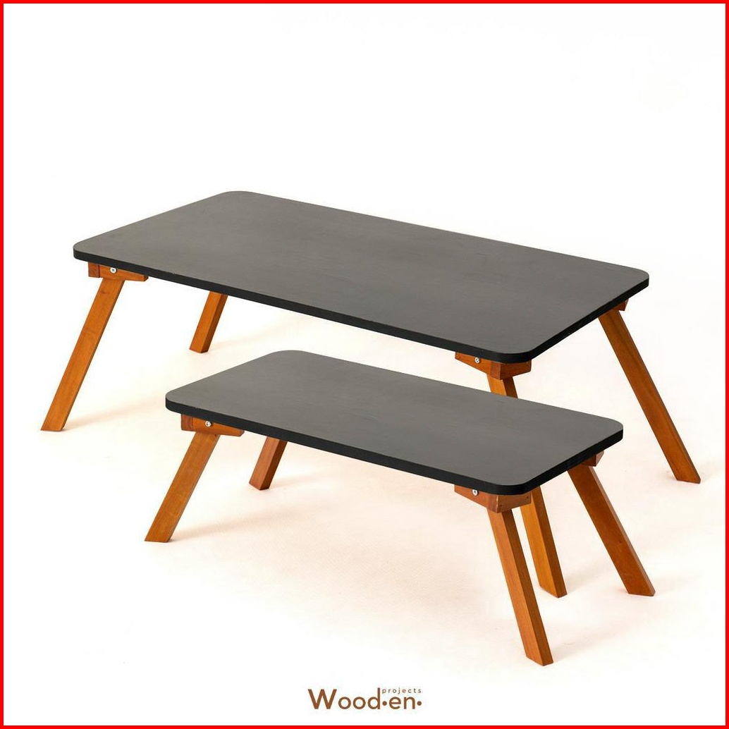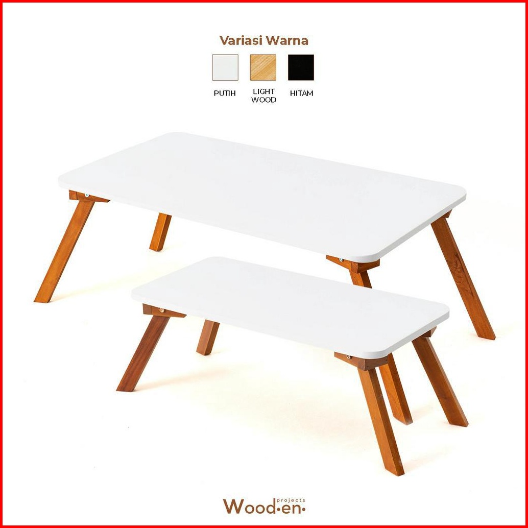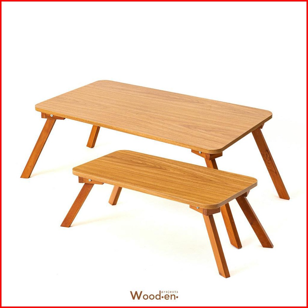 Wooden Projects Meja Lipat Persegi Panjang Laptop Lesehan Portable Makan Tamu Belajar Multifungsi Minimalis Kayu Japandi