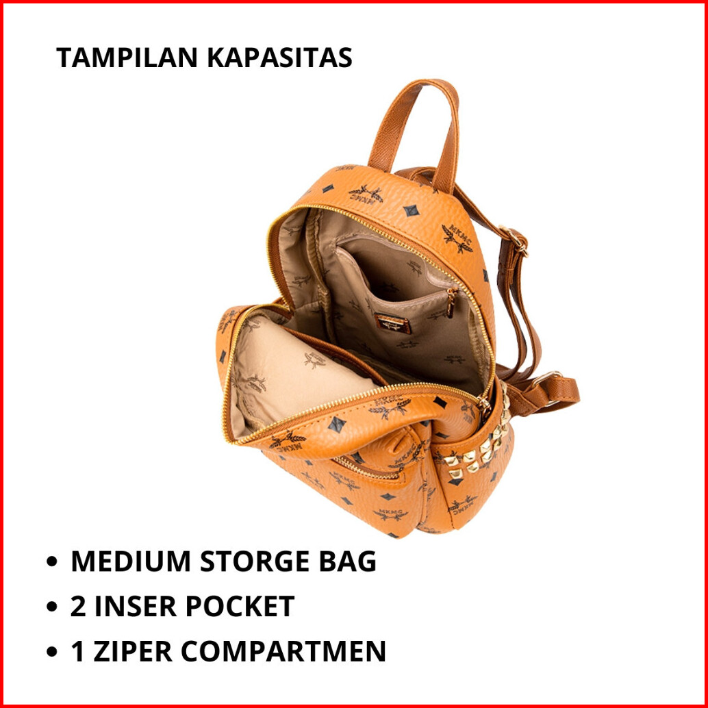 Okeimkmc Tas Ransel Wanita Mini Backpack Fashion Tas Punggung Ziper Gendong Kulit Motif Ransel Remaja Sekolah Casual Mul