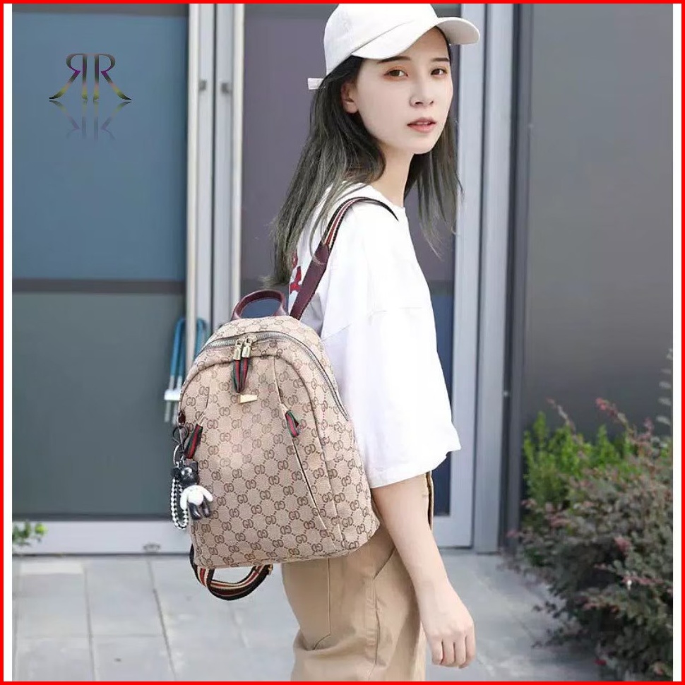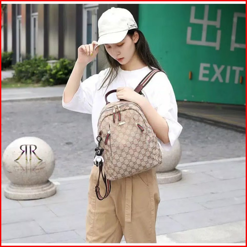 Tas Ransel Wanita Fashion Perempuan Korea Motif Mocca Ransel Free Boneka