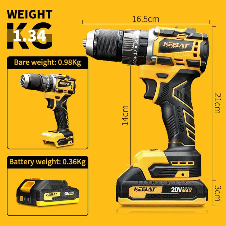 KEELAT-KCD012 20V Brushless Mesin Bor Heavy -Duty Drill 80nm Cordless Drill Bor 13mm Bor Listrik 1.5A MT Baterai