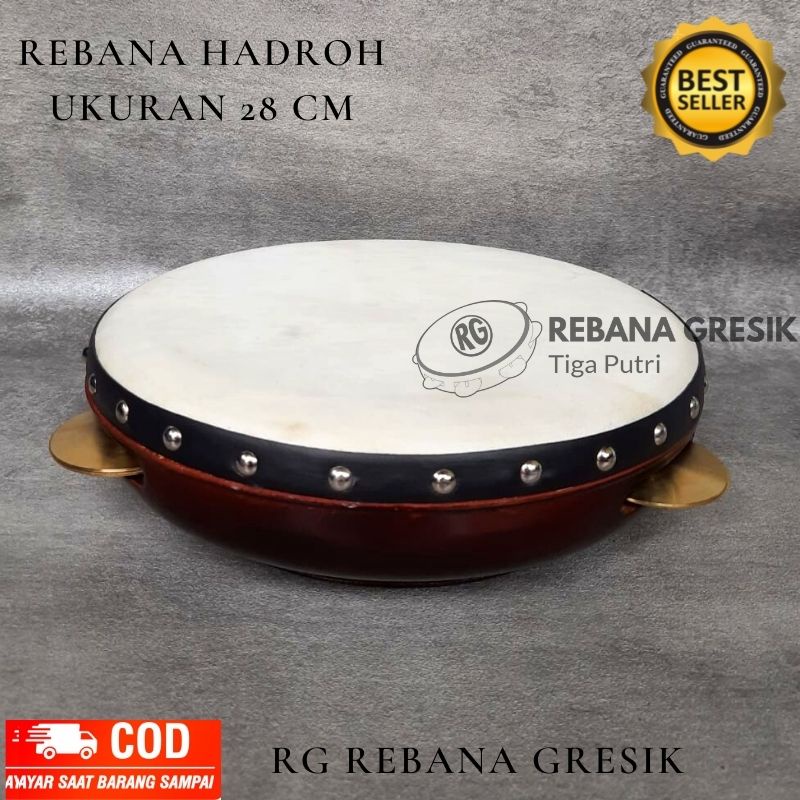 REBANA HADROH BERKUALITAS MODEL JEPARA KAYU MANGGA KULIT LULUR UKURAN 28 CM KENCER KUNINGAN 1PCS