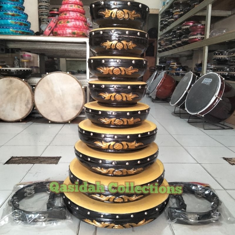 Rebana Qasidah Lasqi Ukir Susun 9+2 Tamborin Super Quality