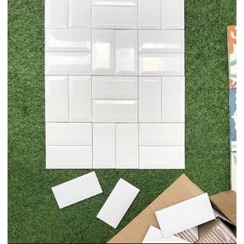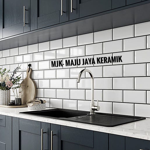 [Limited Stock]Keramik Subway Bevel 10X20 Putih Mulia Signature | Keramik Dinding Dapur 10x20 Mulia Signature