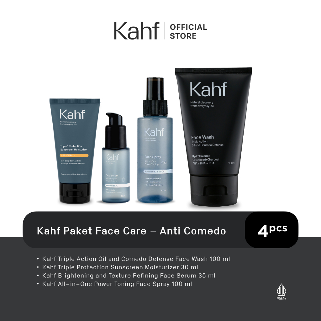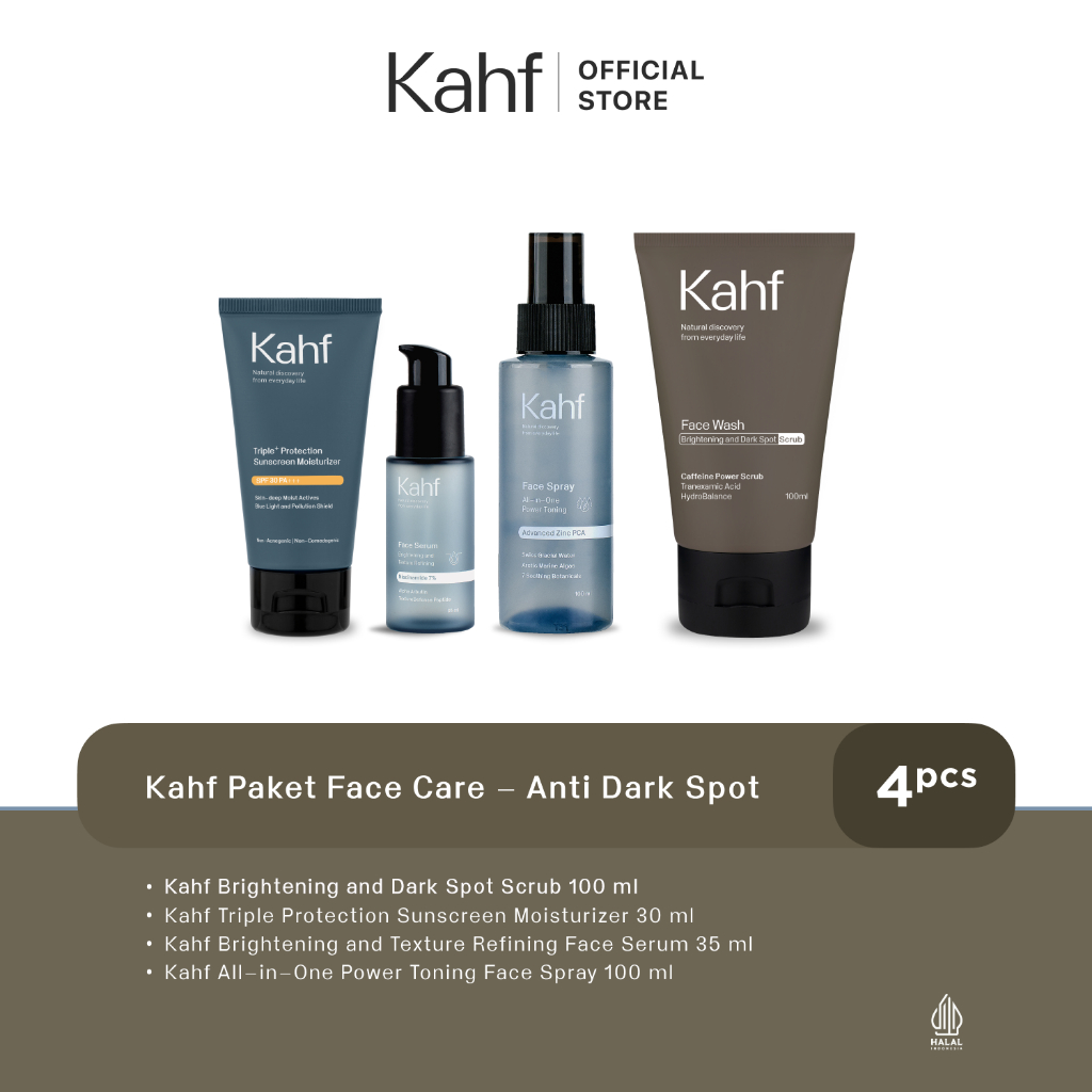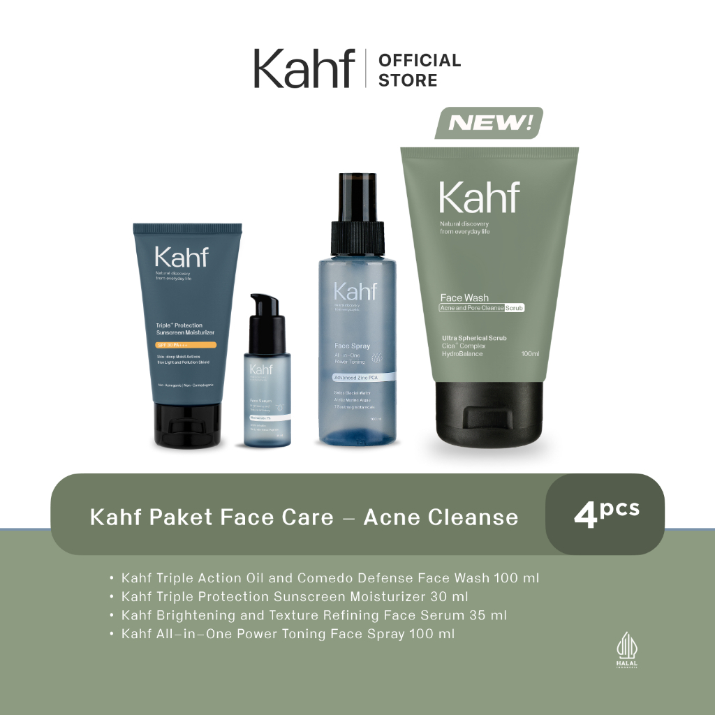 (FLASH SALE) Kahf Paket Face Care Isi 4pcs - Face Wash, Sunscreen, Serum, & Toner