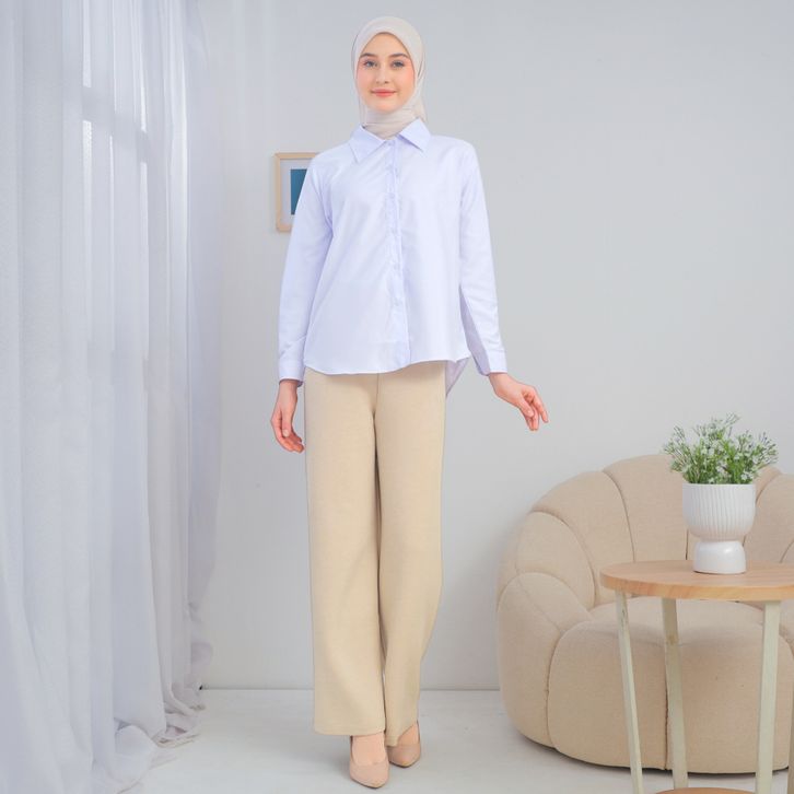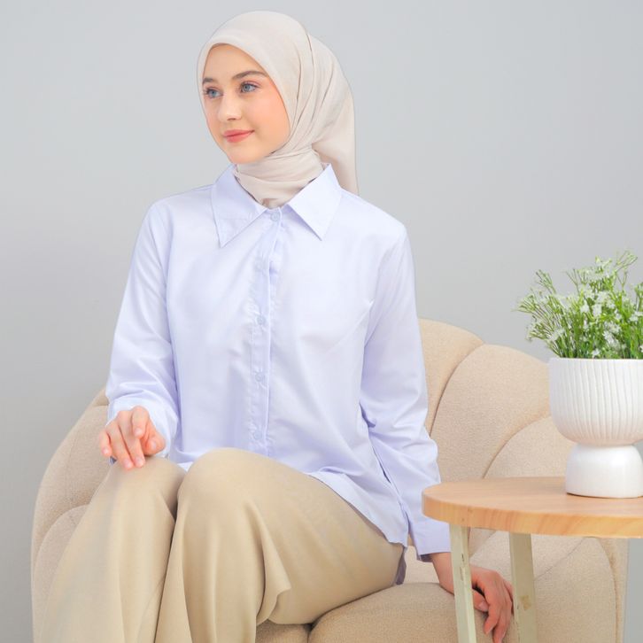(Mall) Kemeja Wanita Lengan Panjang Putih Polos untuk Kerja Kantor Kasual Murah